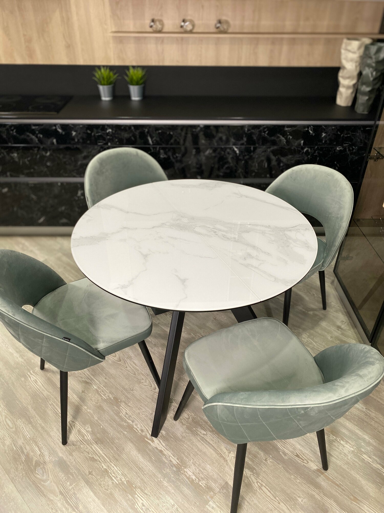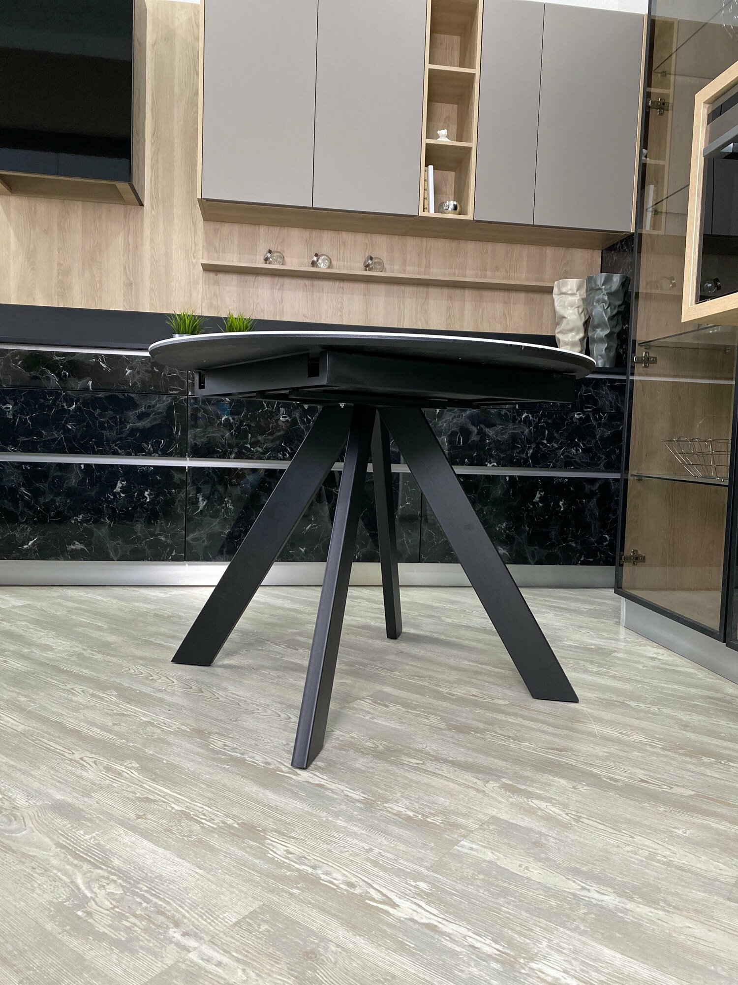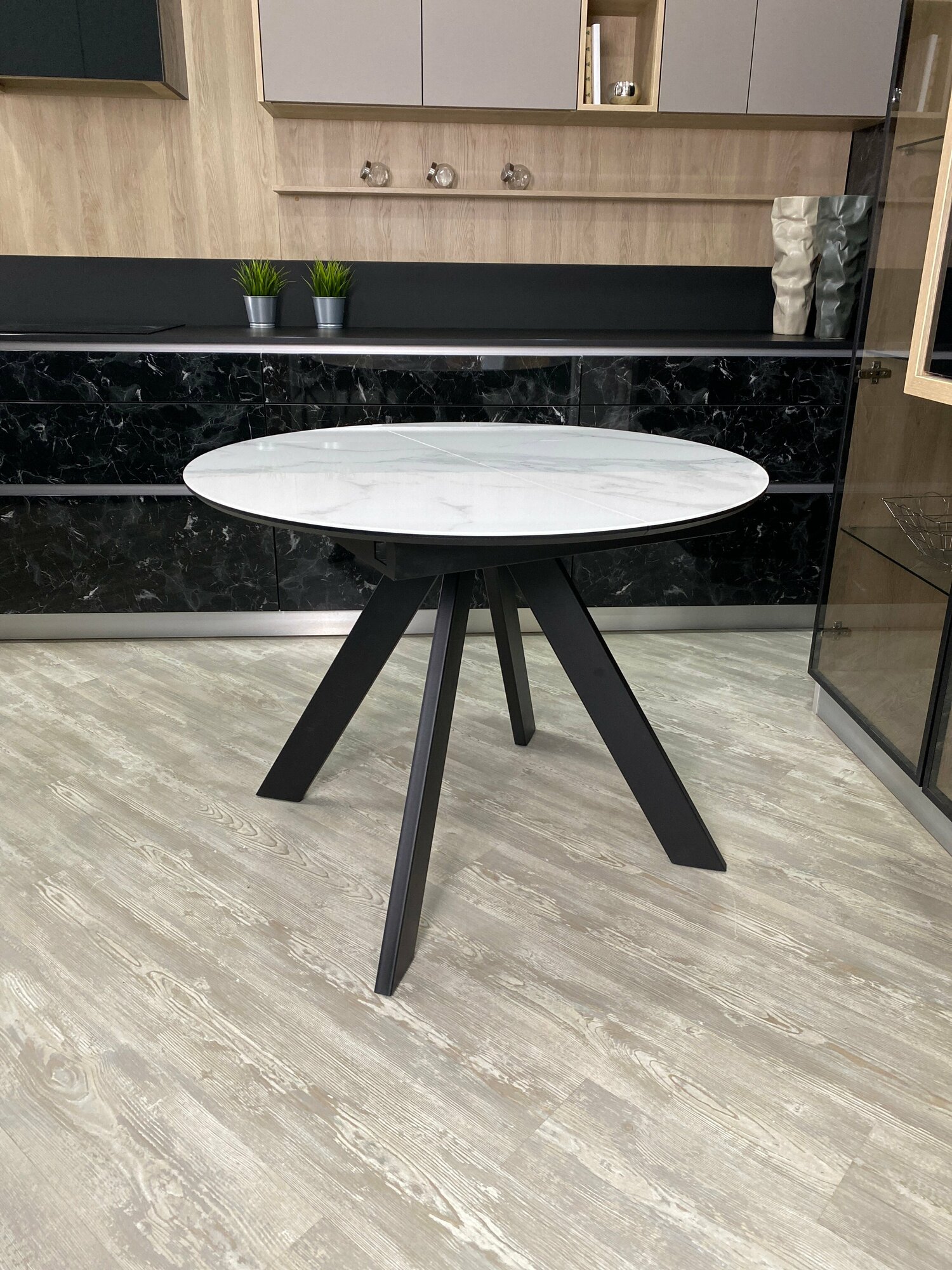 Стол обеденный раскладной "бонжур" круглый из керамики Черный мрамор