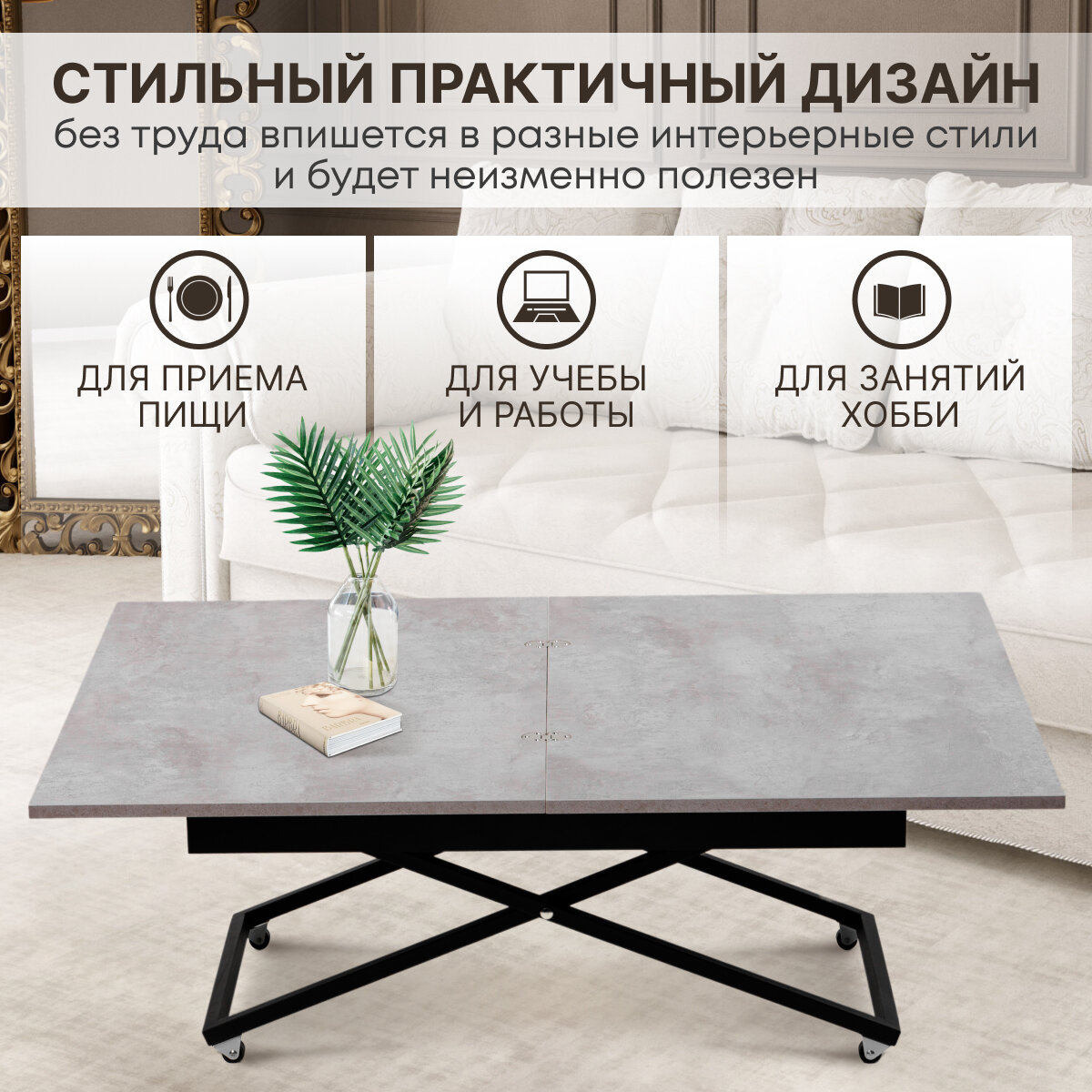 Стол-трансформер универсальный, ЛДСП Цемент интересное:
