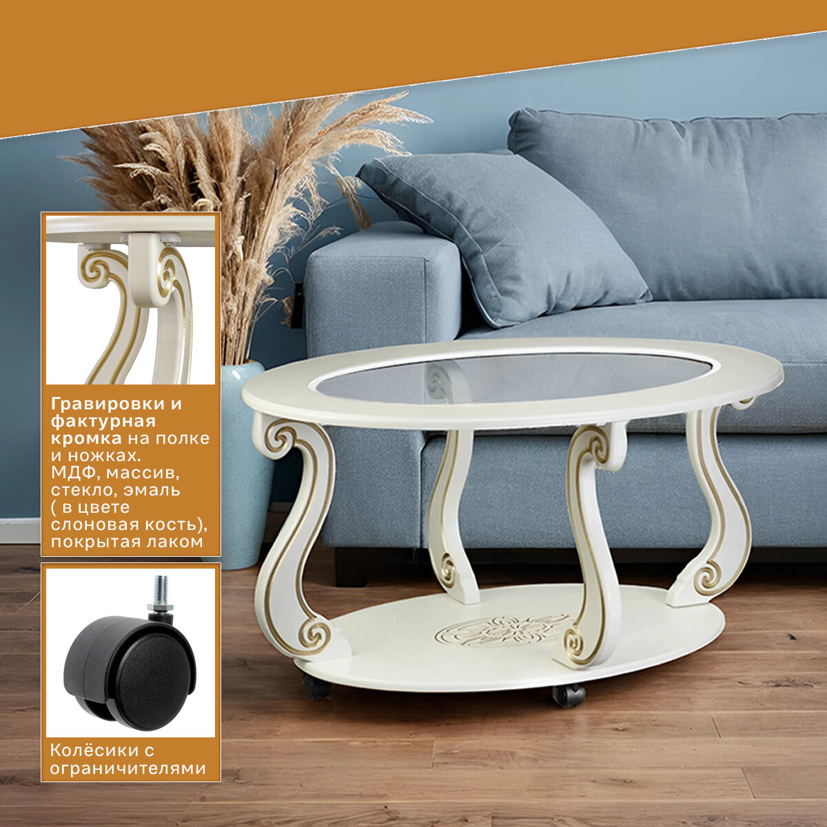 Стол журнальный Овация (С) на колесах слоновая кость/золото