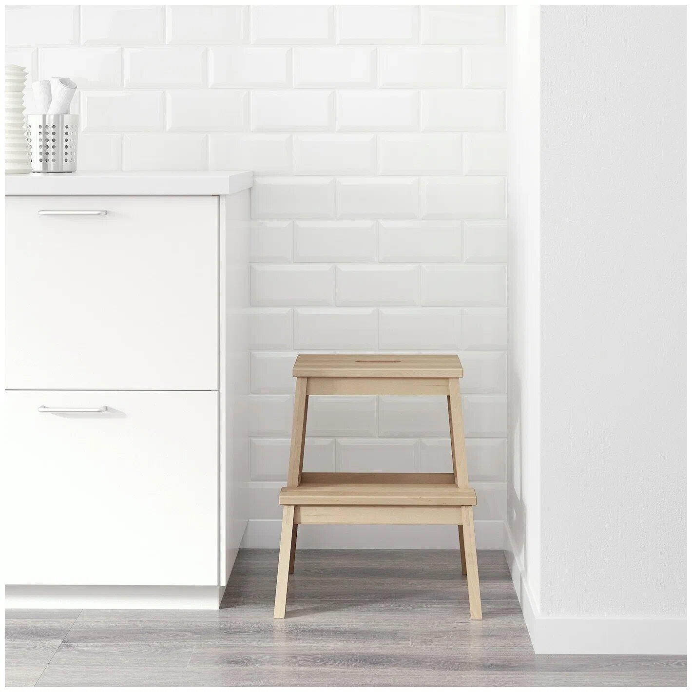 Табурет-стремянка BEKVÄM беквэм. 100% массив берёзы, 2 ступени. Высота: 50 см. Нагрузка: до 120 кг. Покрытие: масло. Цвет: белый