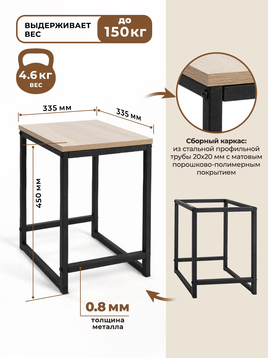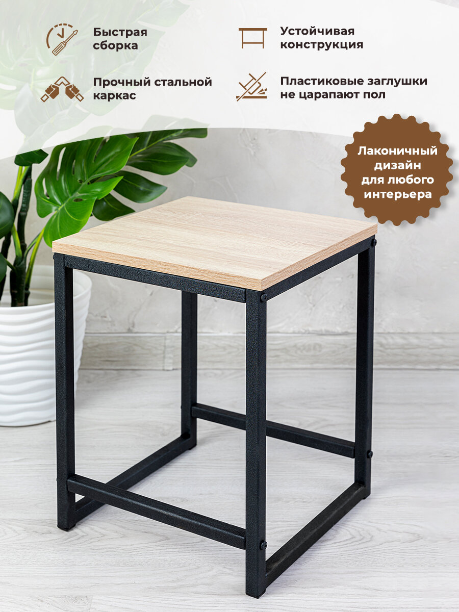 Табурет для кухни и ванной деревянный металлический, мебель лофт, стул, цвет дуб сонома