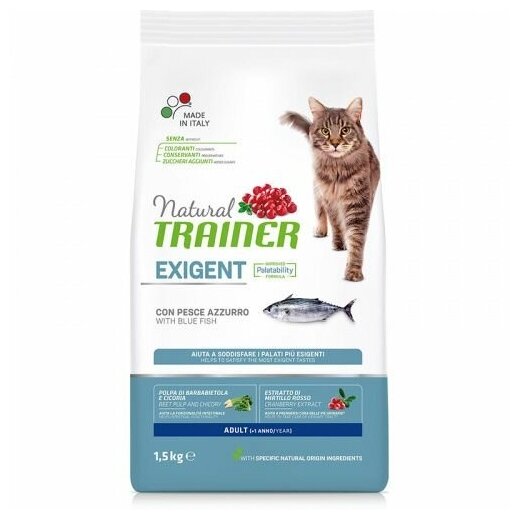 Купить TRAINER NATURAL EXIGENT CAT WITH BLUE FISH для привередливых взрослых кошек с пеламидой (1,5 кг)