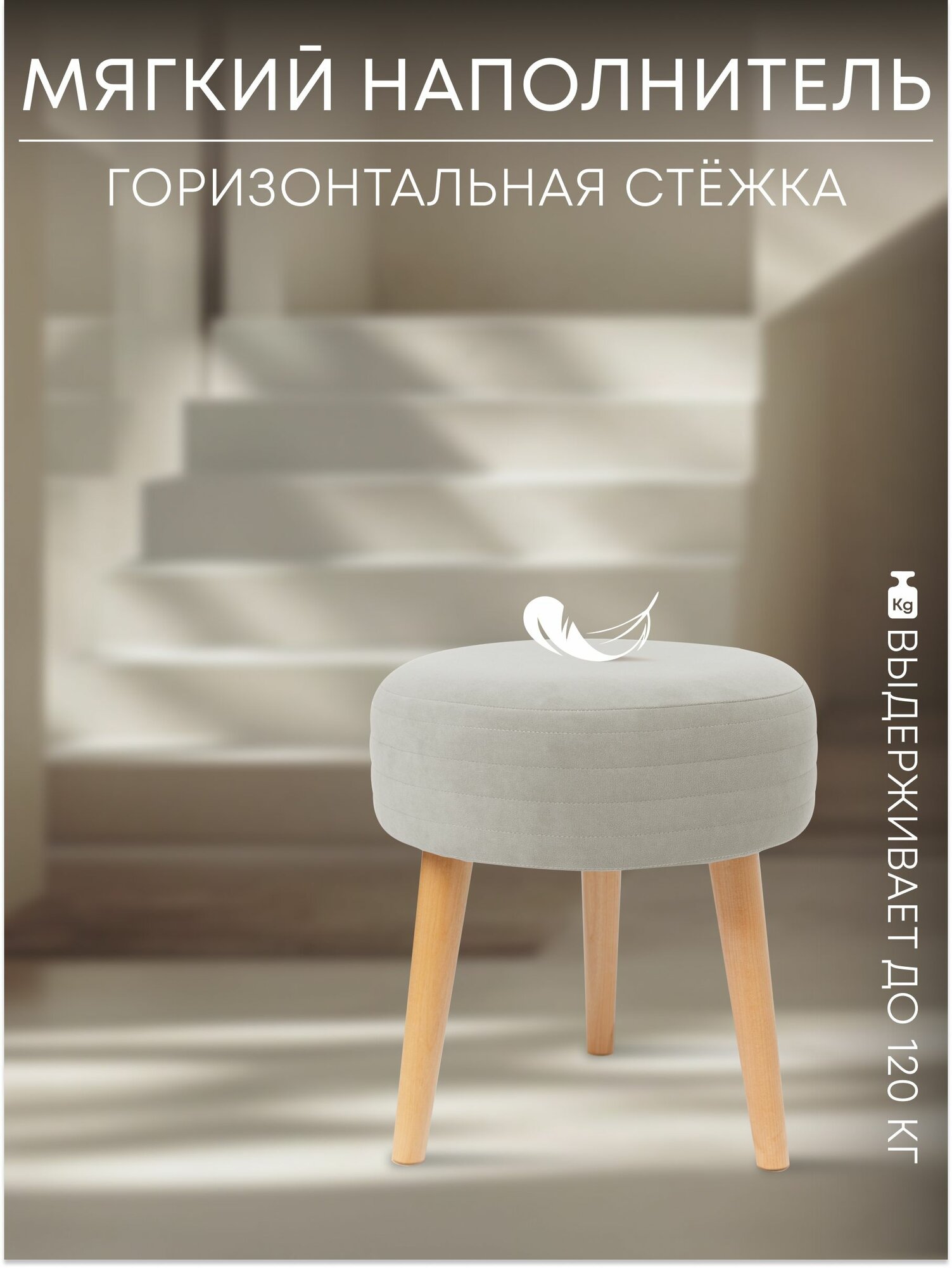 Купить Табурет мягкий, пуфик для кухни, прихожей, туалетного столика 39х39х44 см светло-серый Сон-Сервис