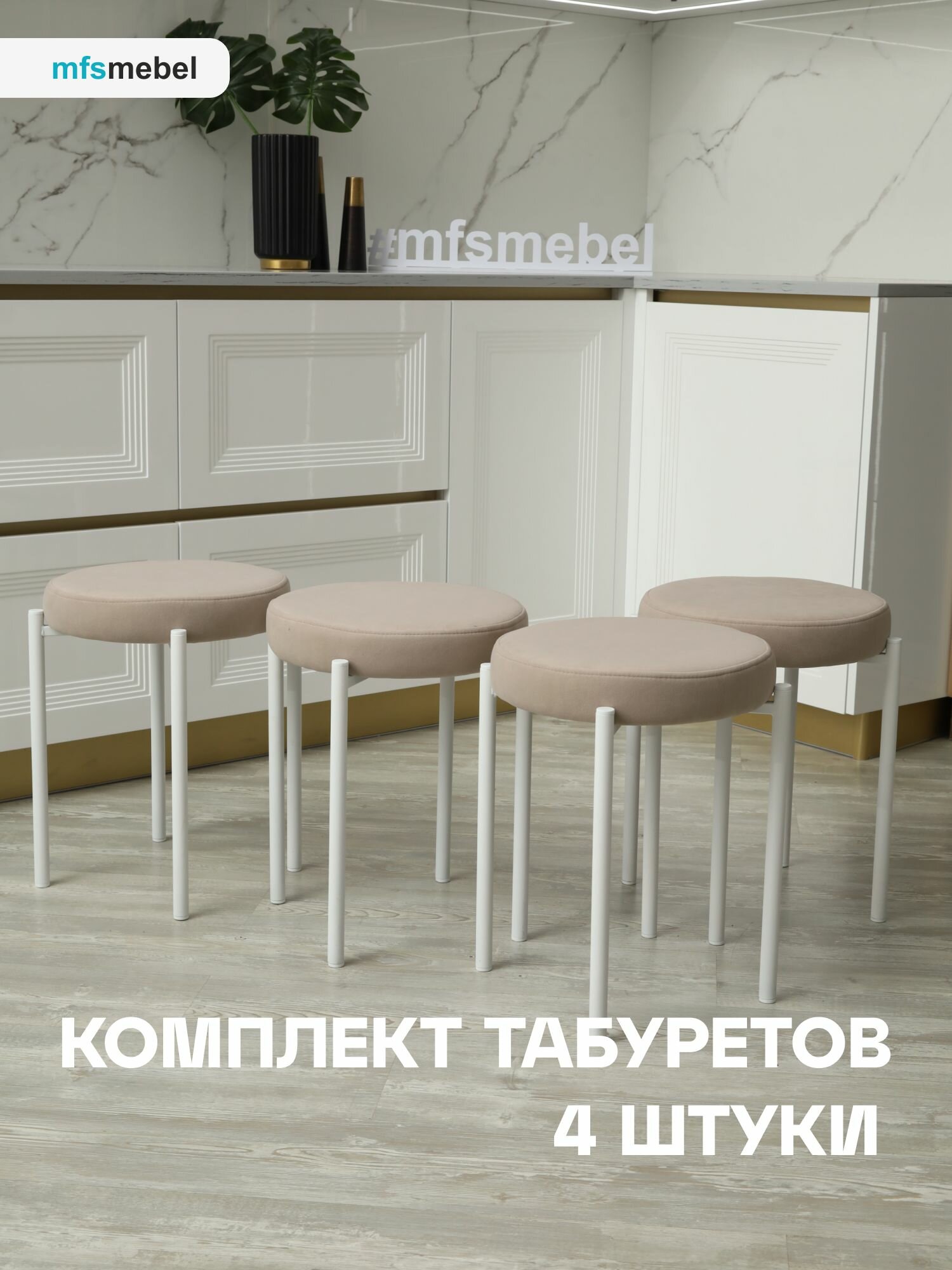 Комплект мягких табуретов Канапе 4шт, бежевый/белые ноги