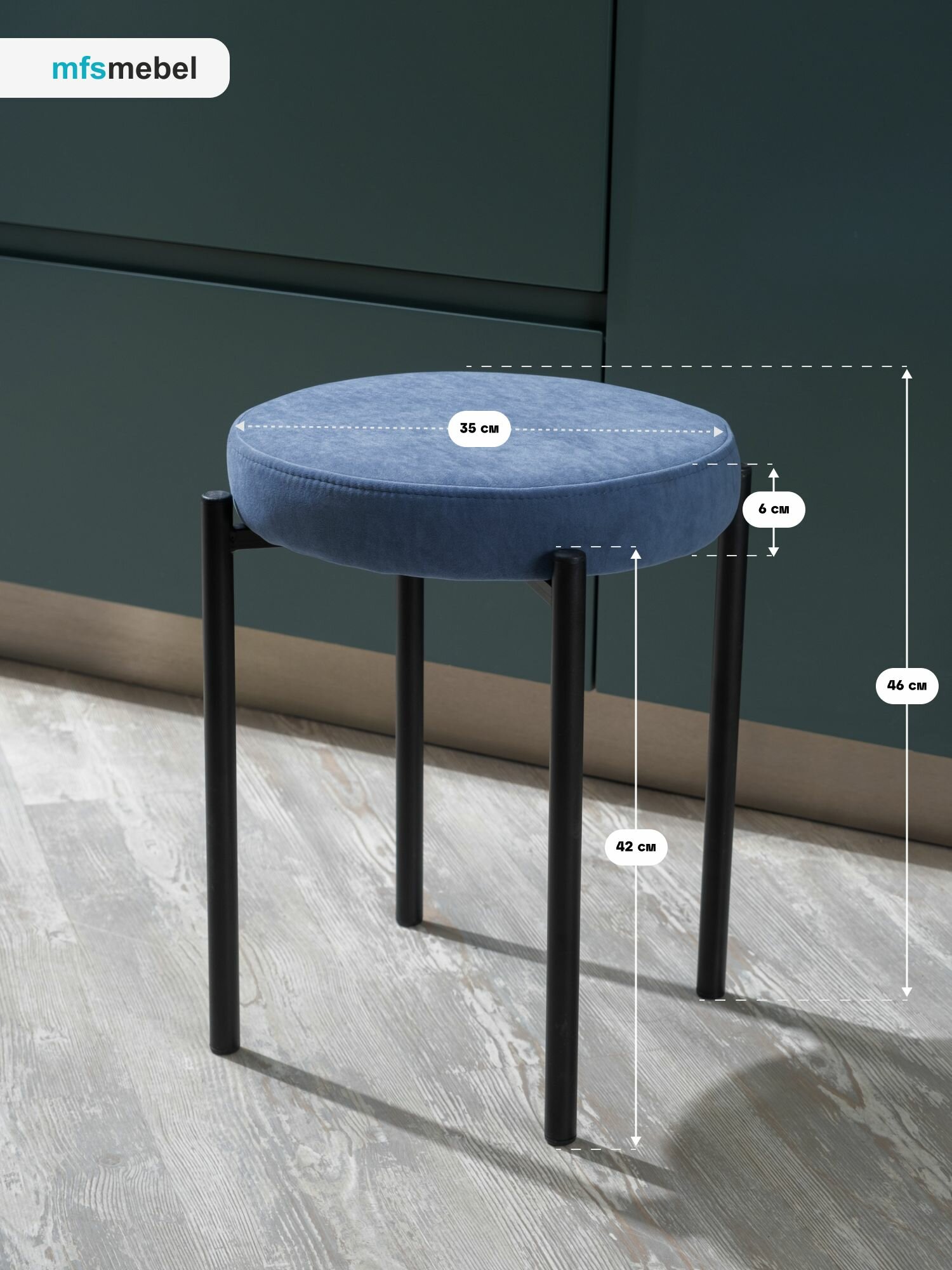 Табурет мягкий, пуфик для кухни, прихожей, туалетного столика 39х39х44 см синий Сон-Сервис