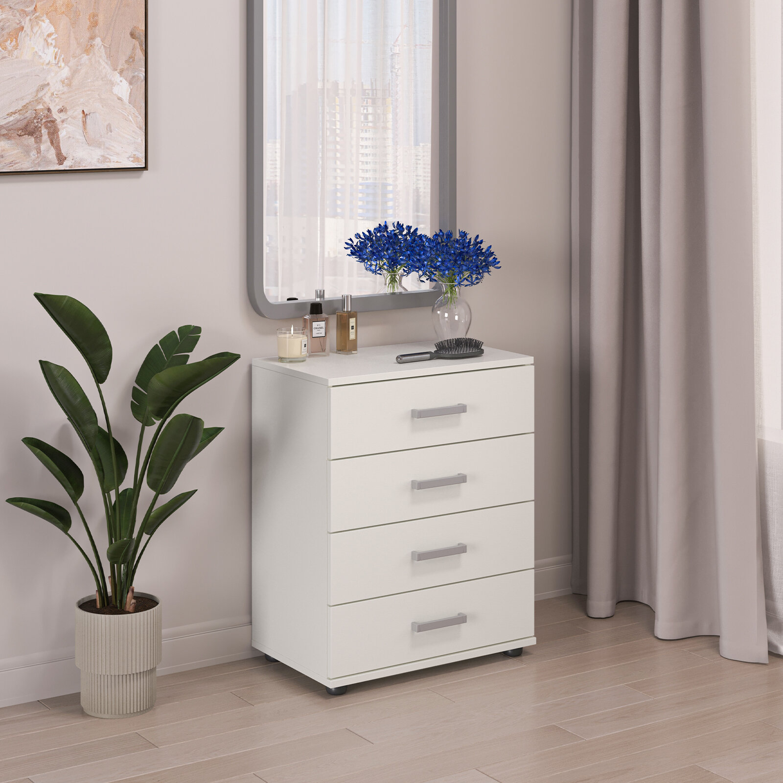 Комод Neoletta 4 ящика (570х755х352) Белое Тиснение интересное: