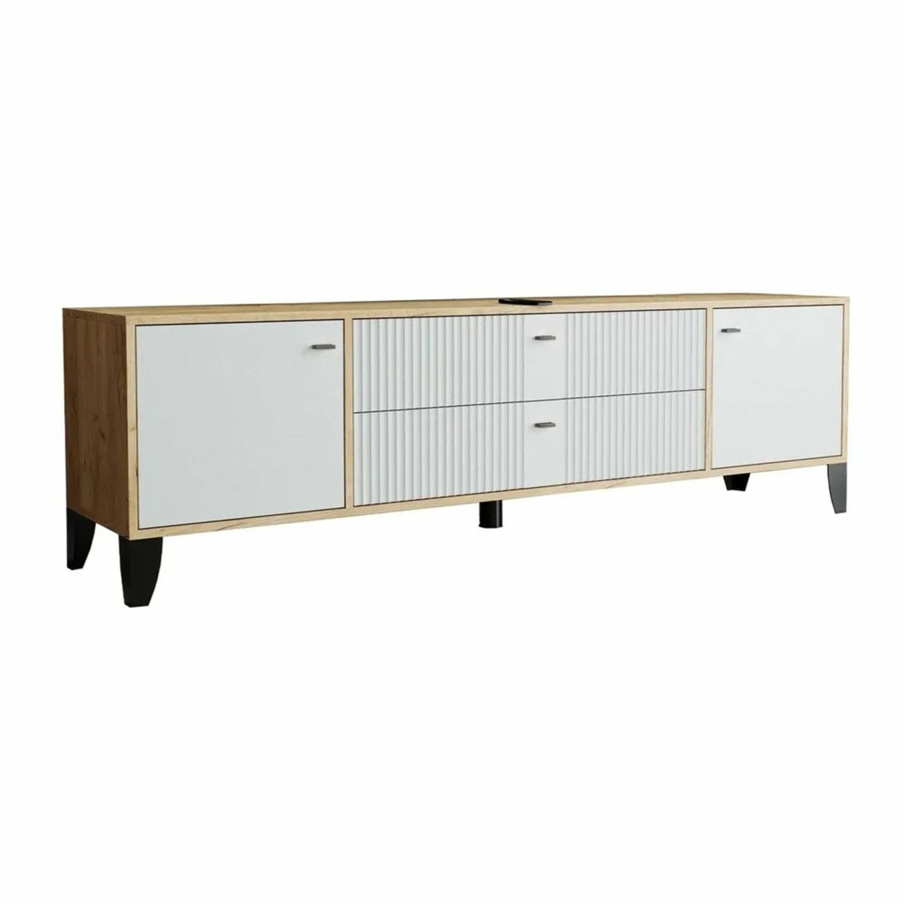 Тумба ТВ Парус-10 дуб крафт золотой/карбон вулкан ЛДСП, для гостиной, спальни 1802х530х400, 1шт