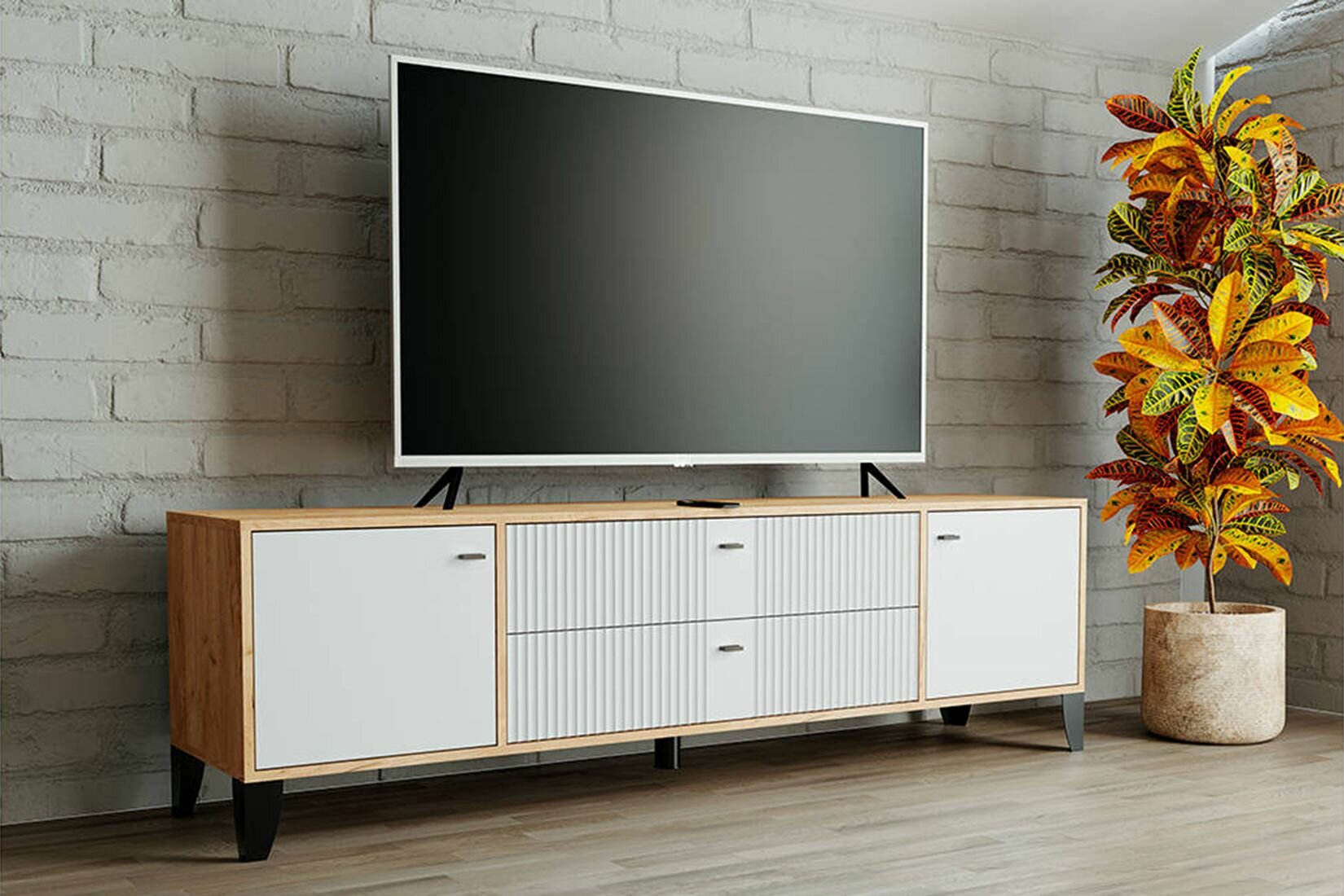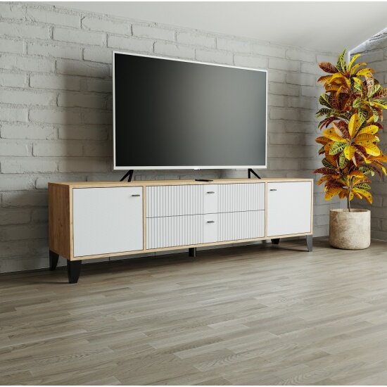 Тумба ТВ напольная Парус-10 дуб крафт золотой/карбон фарфор ЛДСП/МДФ с полками, ящиками, ножками для гостиной, спальни, зала, кабинета, офиса 1802х530х400 тэкс интересное:
