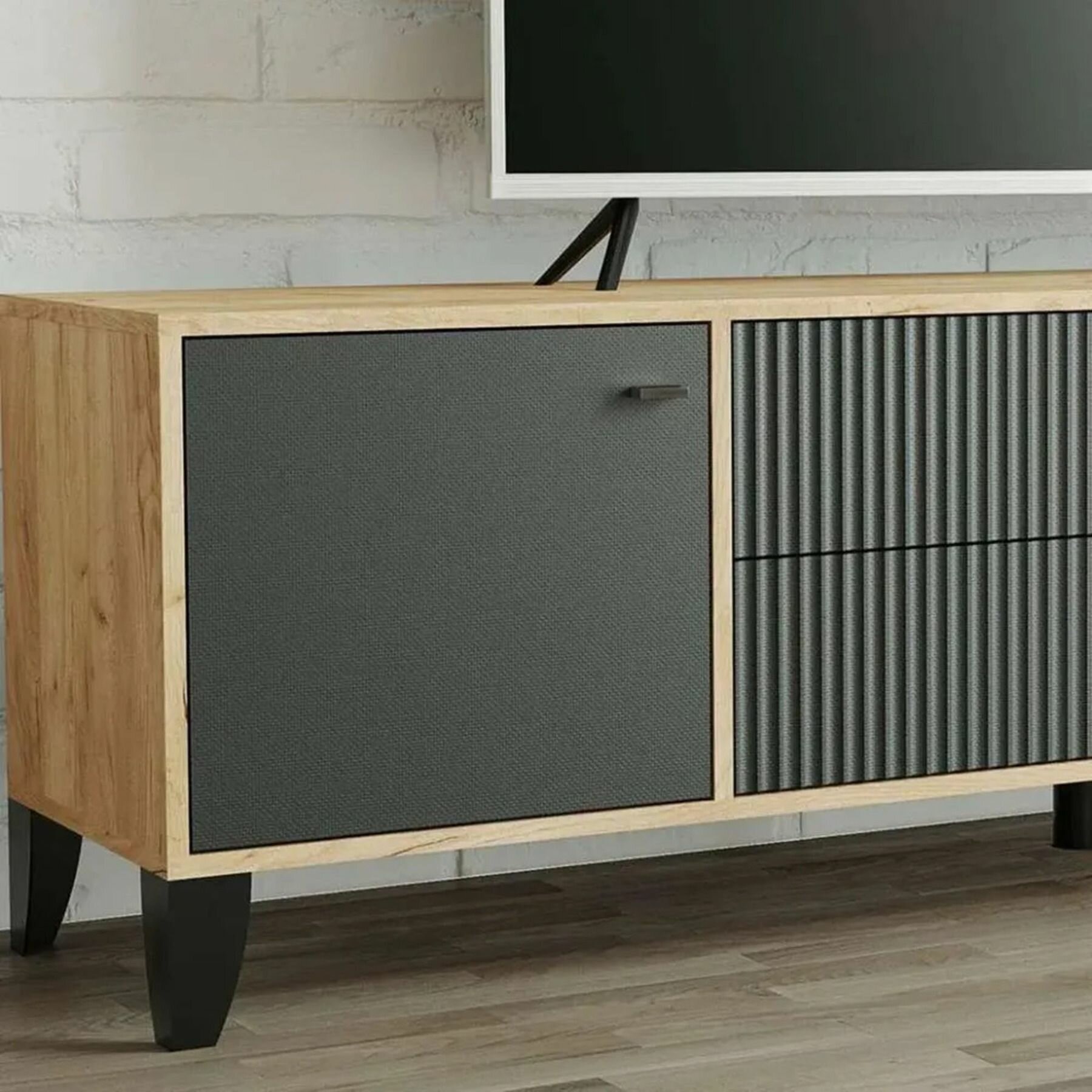 Тумба ТВ Парус-10 дуб крафт золотой/карбон вулкан ЛДСП, для гостиной, спальни 1802х530х400, 1шт