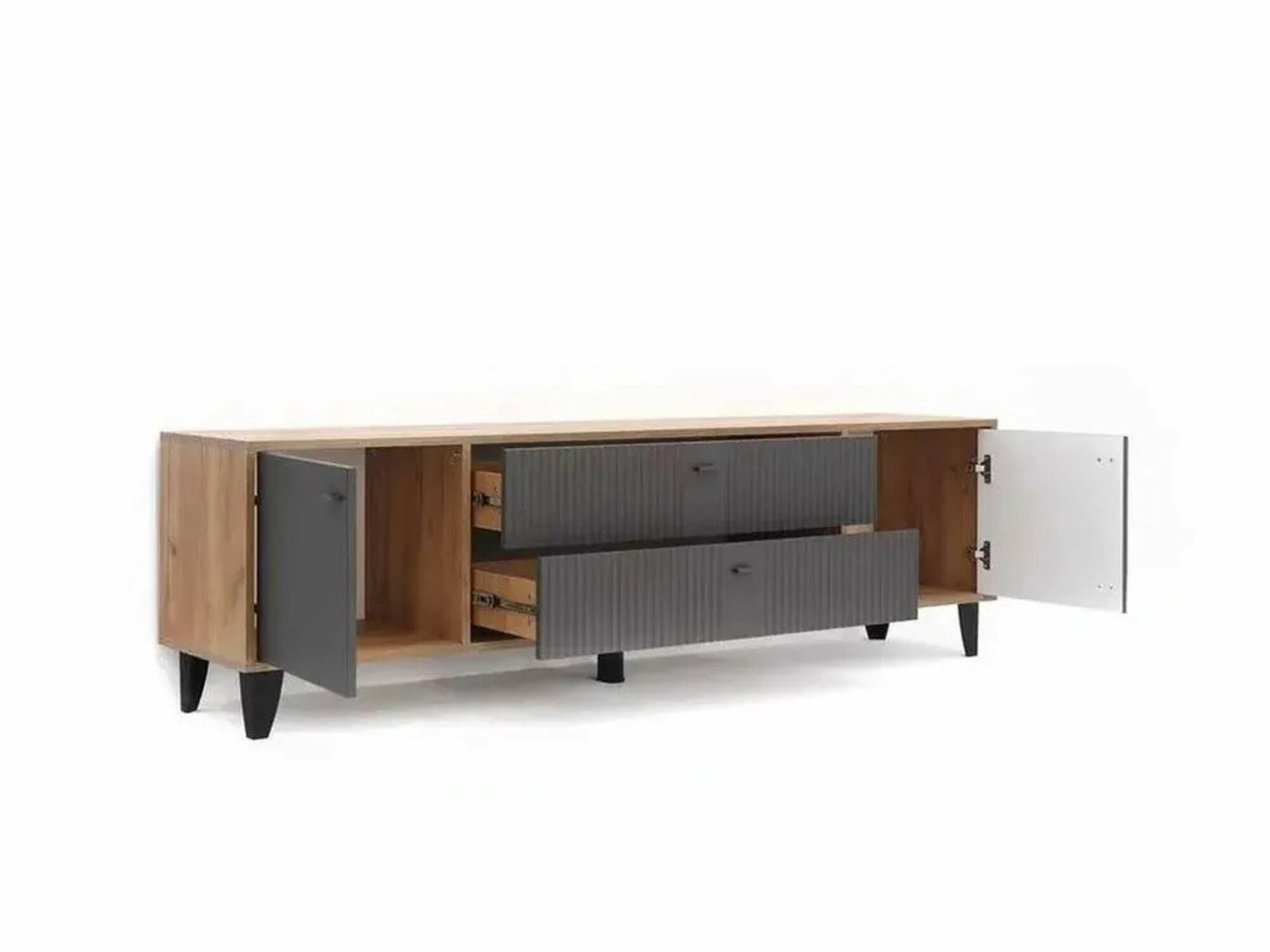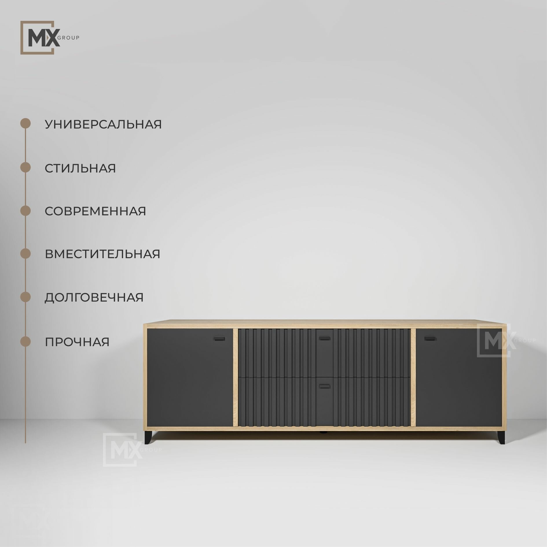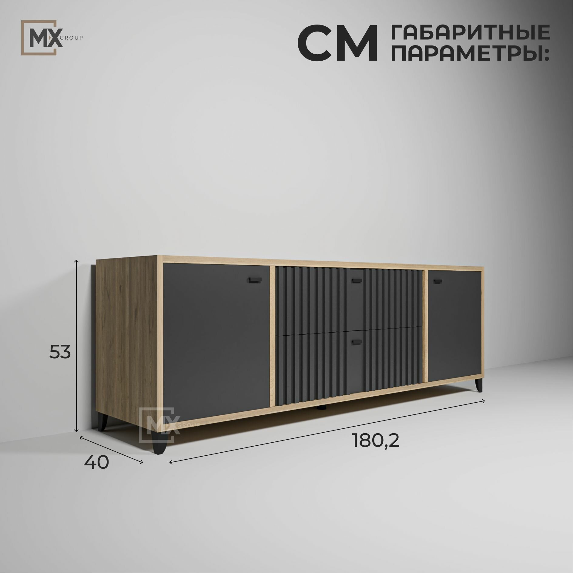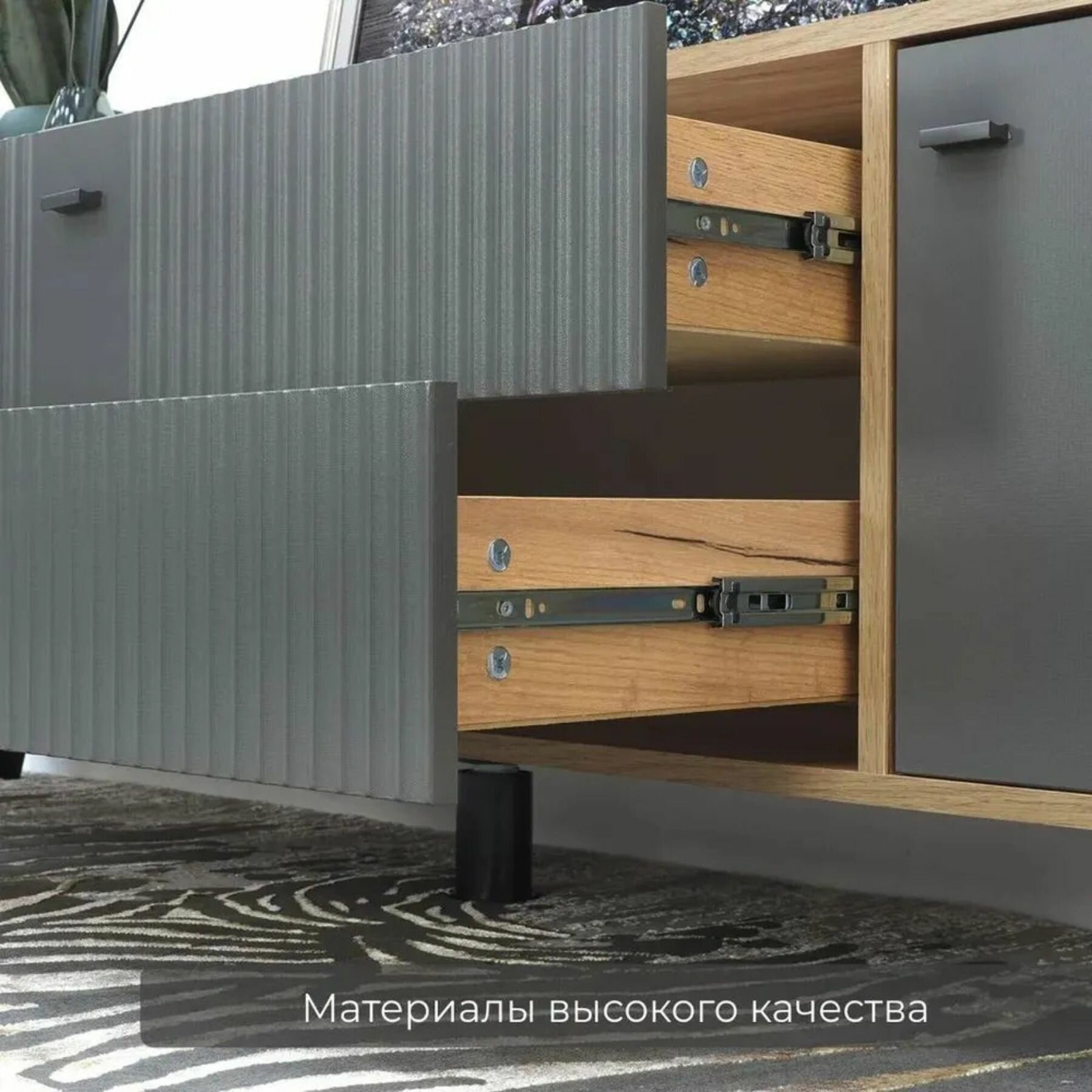 Тумба ТВ напольная Парус-10 дуб крафт золотой/карбон фарфор ЛДСП/МДФ с полками, ящиками, ножками для гостиной, спальни, зала, кабинета, офиса 1802х530х400 тэкс