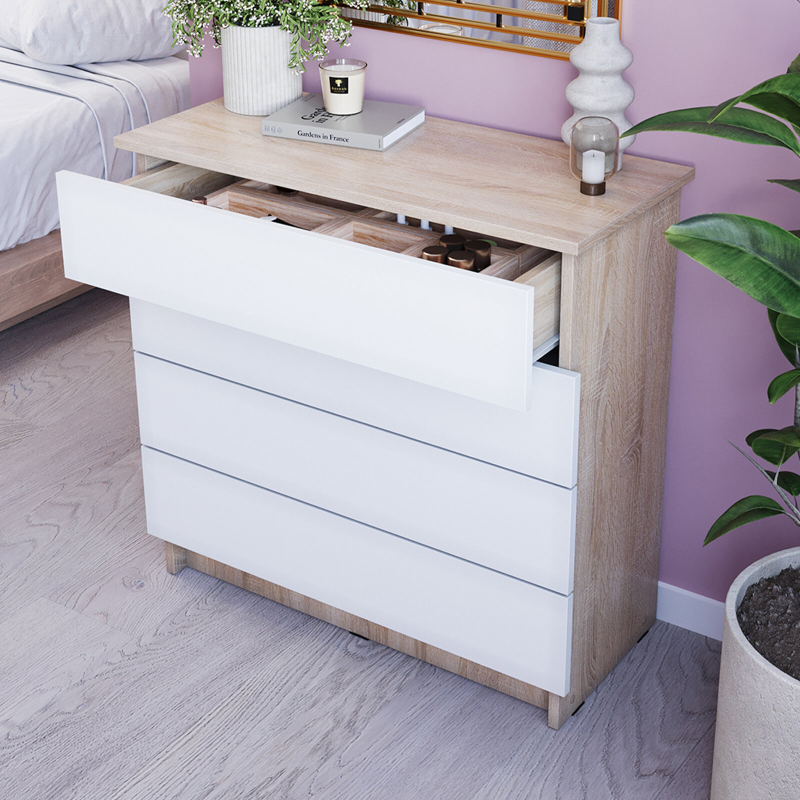 Комод LETTA "Ультра", 4 ящика, белый, ламинированный, ЛДСП, 77,8x32,5x79,4 см