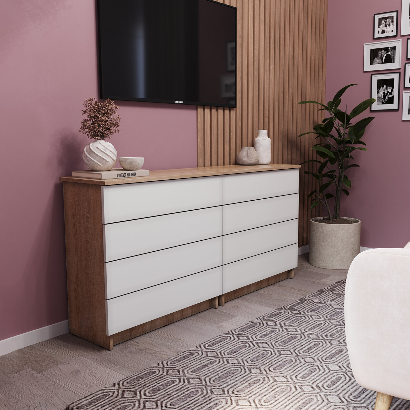 СохранитьКомод с ящиками Ультра белое тиснение /Дуб сонома интересное: