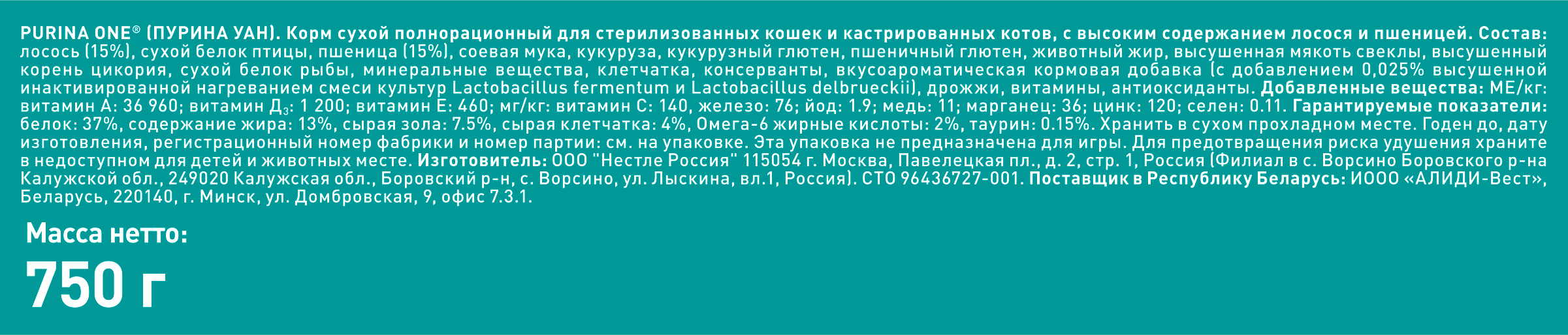 ONE д/стерил кошек Лос&Пшен 750 гр Purina 7828146 .