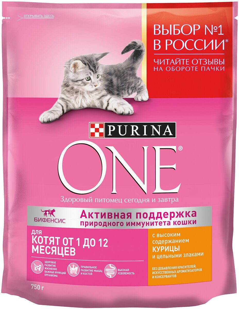 Сухой корм Purina ONE для котят с курицей и цельными злаками, 750 г
