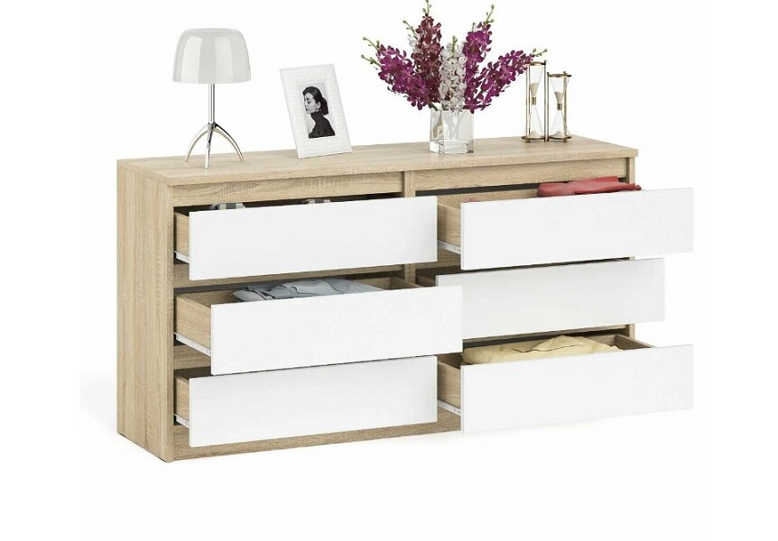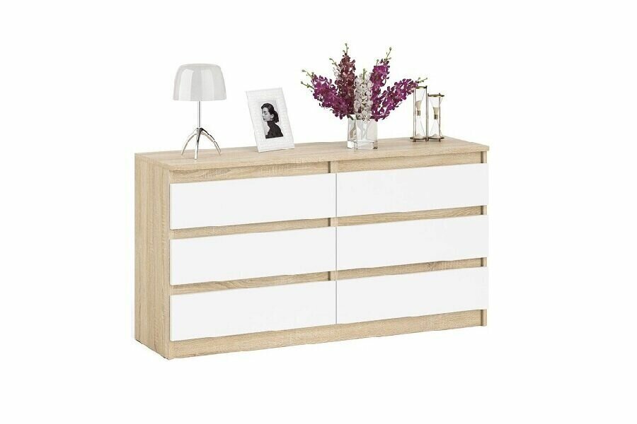 Комод на шесть ящиков Мори МК1380.6 цвет дуб сонома/белый, ШхГхВ 138х41х73 см.