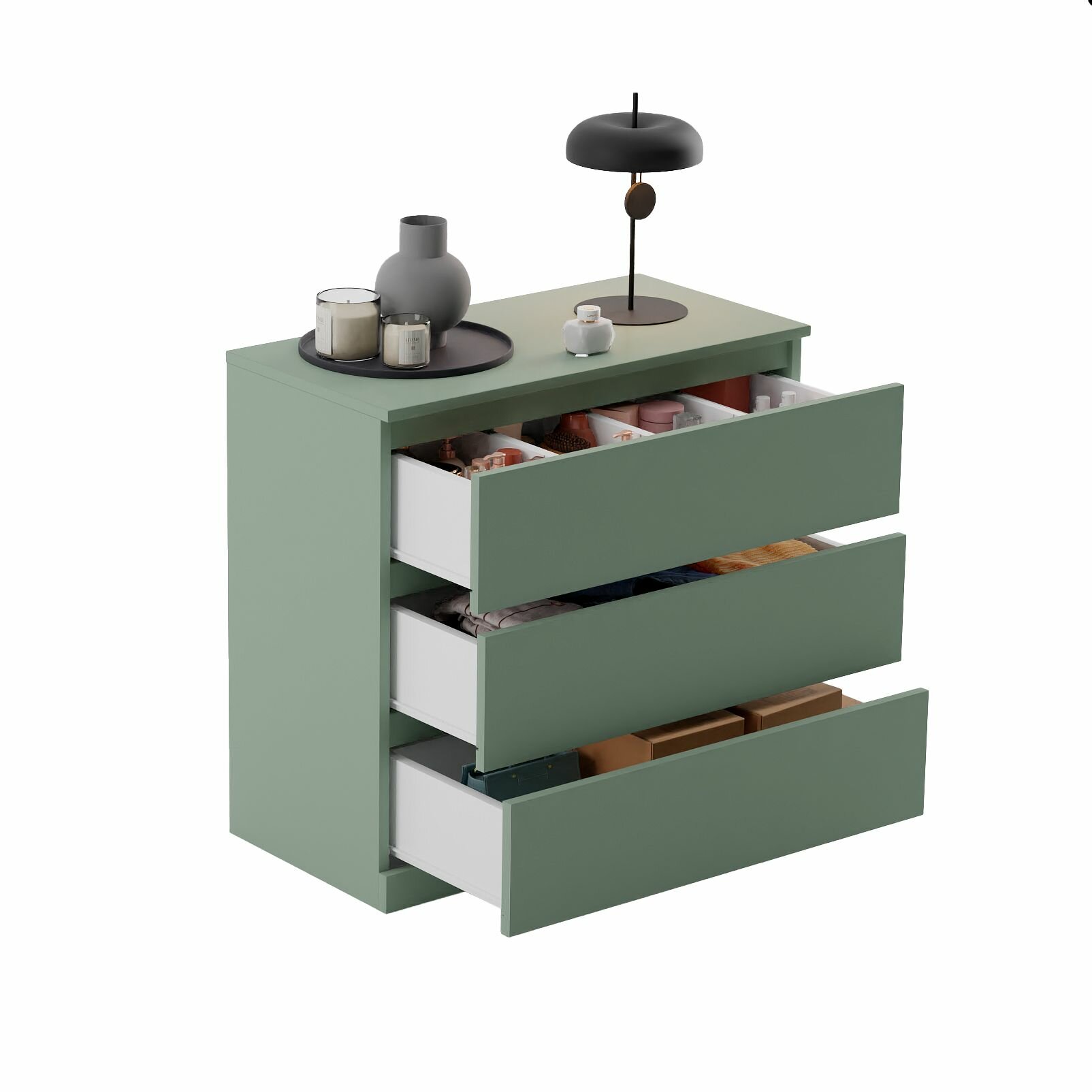 Купить Комод для одежды Марм 70х35х67 см с 3 ящиками без скосов с органайзерами в скандинавском стиле, зеленый самшит