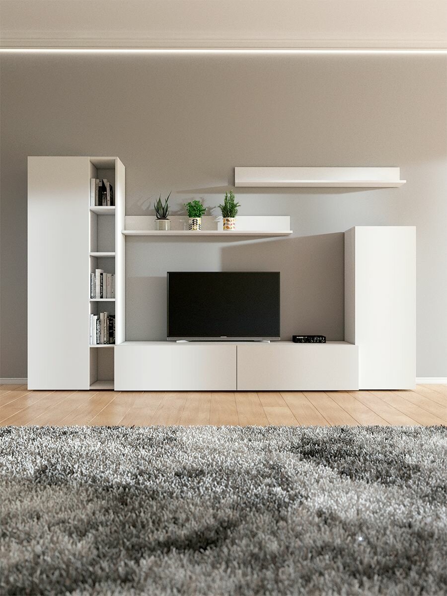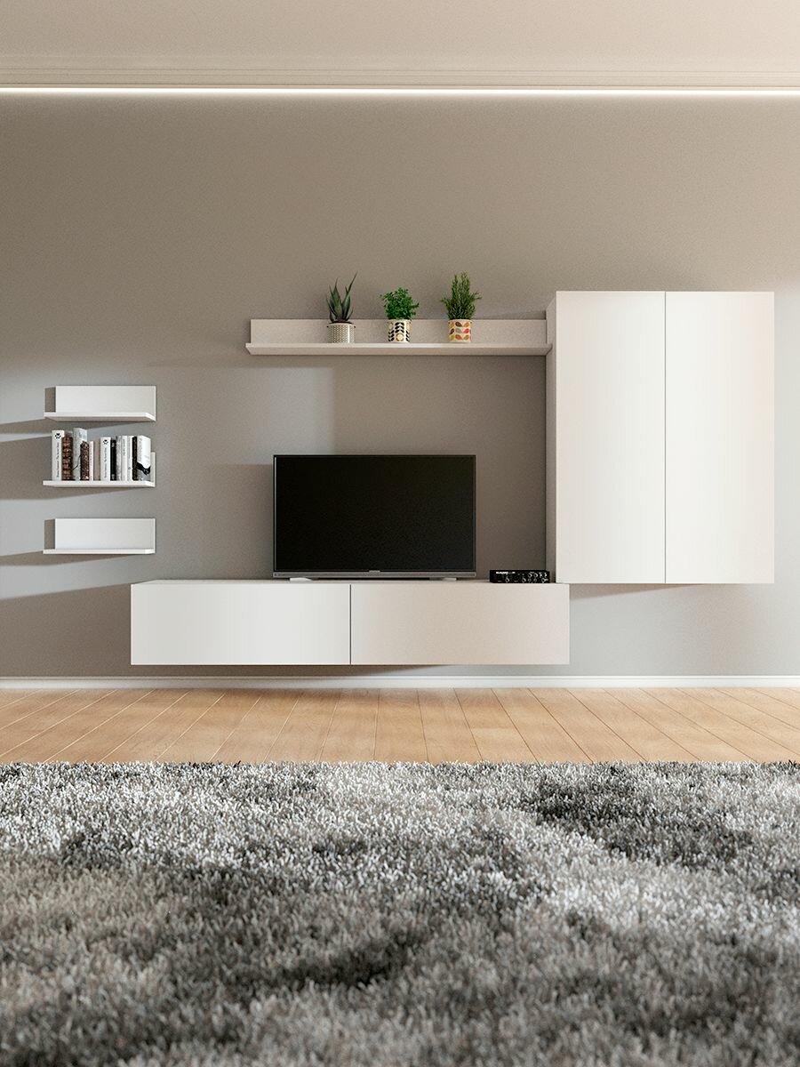 Купить Тумба под телевизор белая 1623х366х300 Гостиная Малави, Woood&Stone (подвесная/напольная) (1)