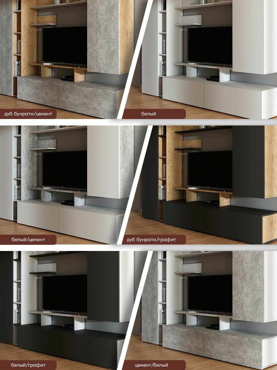 Тумба под телевизор цемент1623х366х300 Гостиная Малави, Woood&Stone