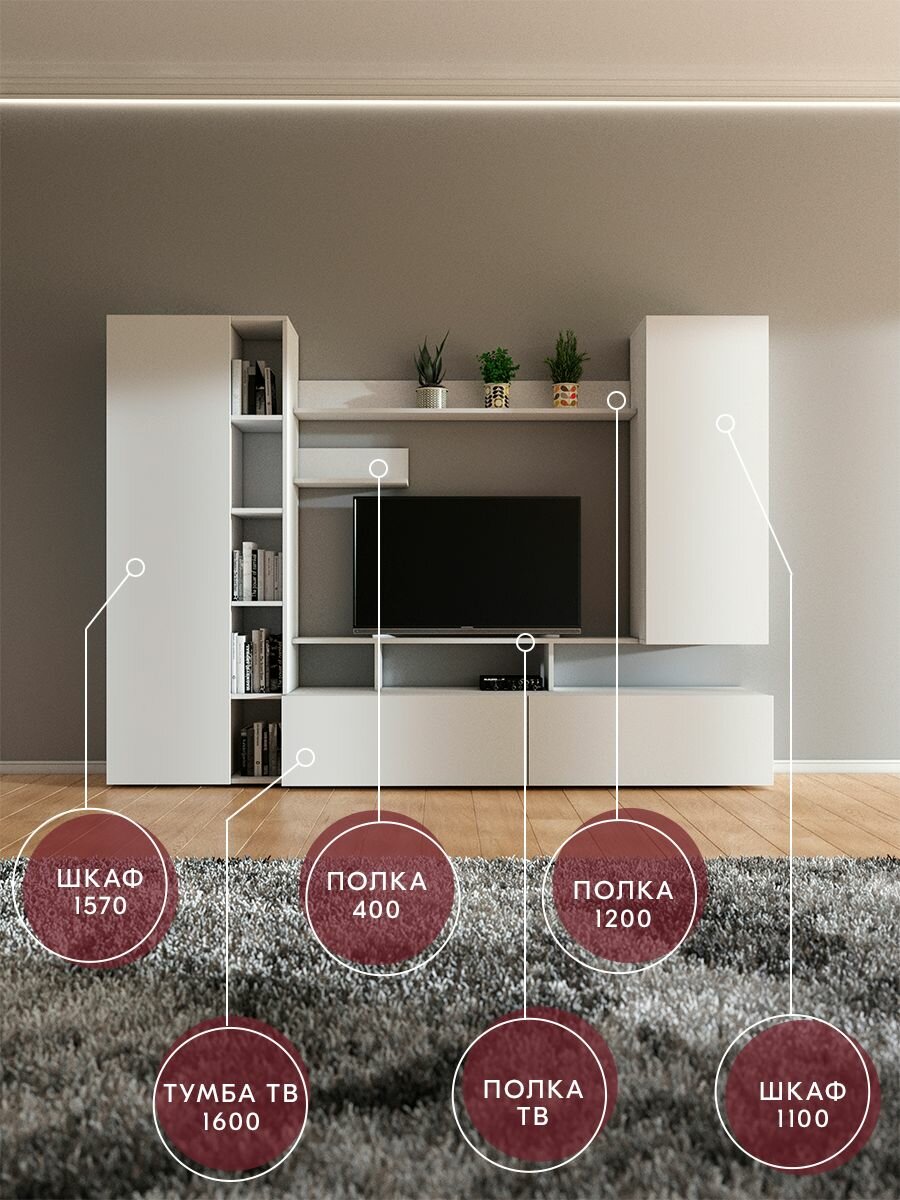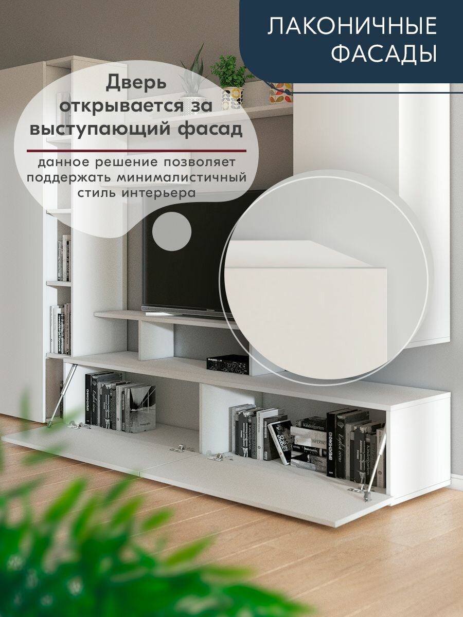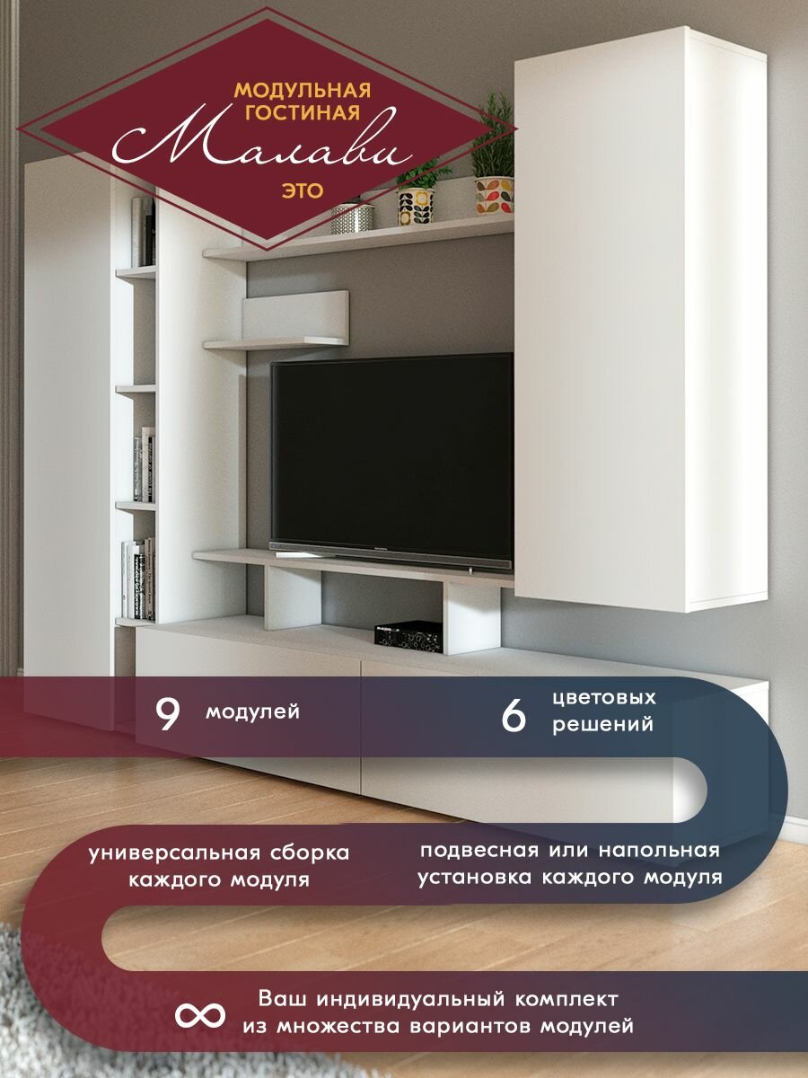 Тумба под телевизор белая 1623х366х300 Гостиная Малави, Woood&Stone (подвесная/напольная) (1) интересное: