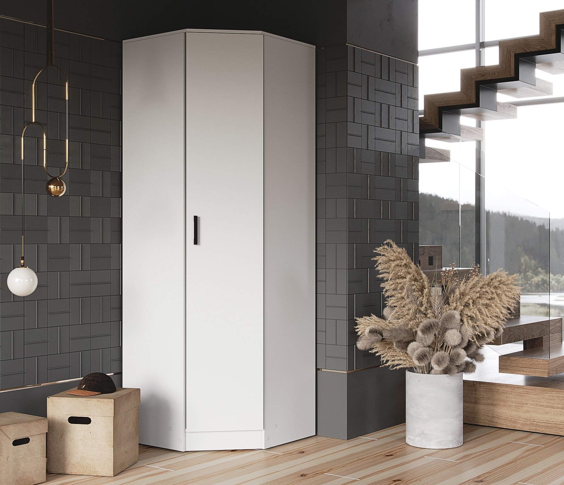 Шкаф распашной Угловой "Эра" Белый гладкий, 76/76х48.7х220 см