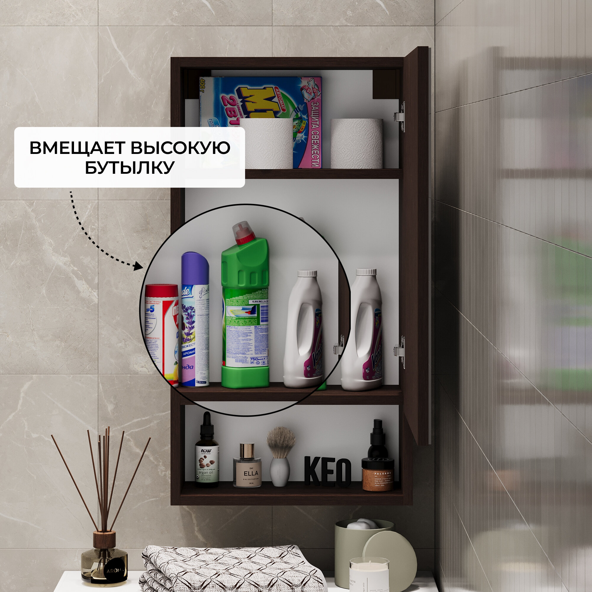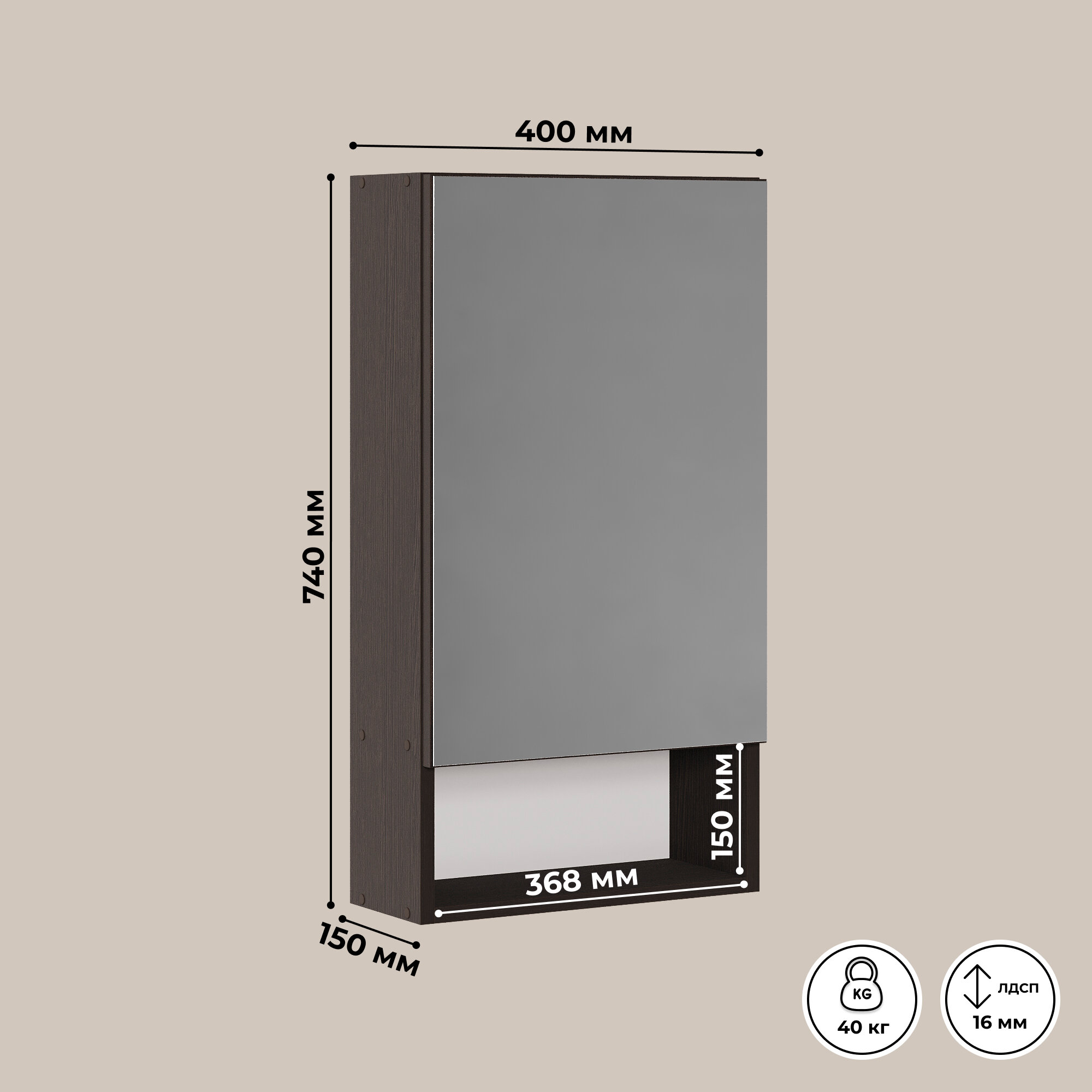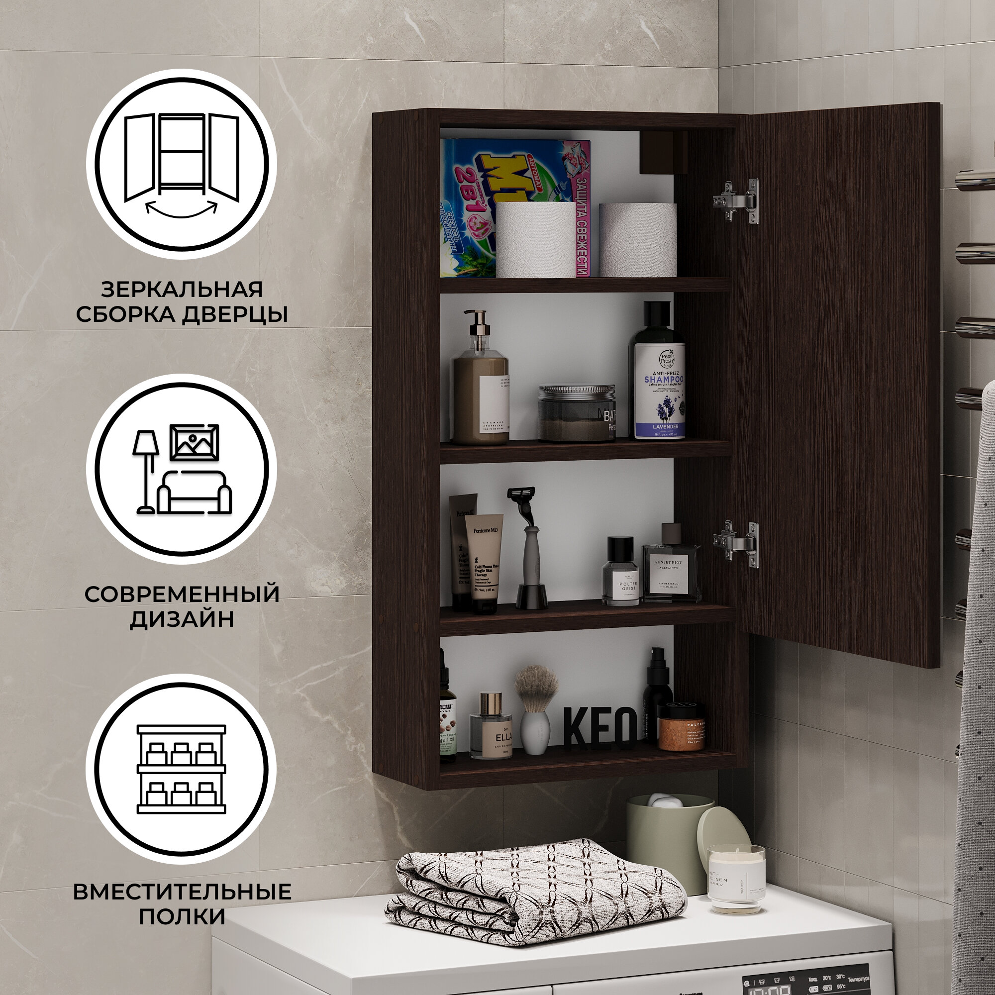СохранитьШкаф навесной с зеркалом для ванной или прихожей подвесной Кео ШКН-140 бежевый Дуб Венге 40х173х400 мм интересное: