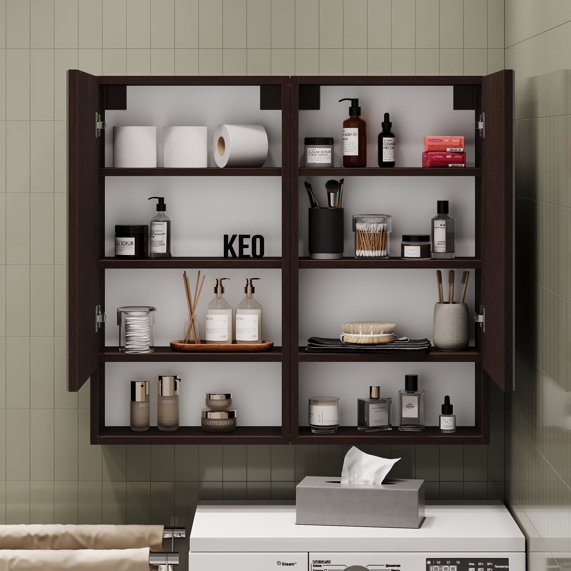 Шкаф навесной с зеркалом для ванной прихожей подвесной деревянный Кео ШКН-140 графит 740х173х400 мм