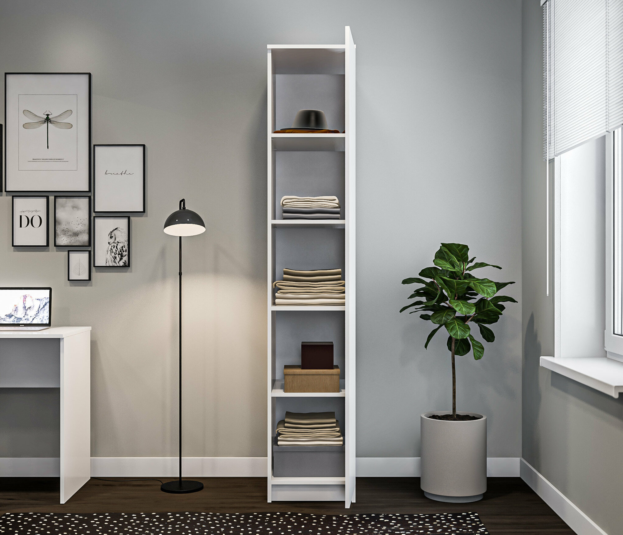 Купить Однодверный шкаф-пенал столплит Леон СБ-3360 с 4 полками в гостиную, в прихожую, в спальню, в детскую, Белый 39х202х52 см