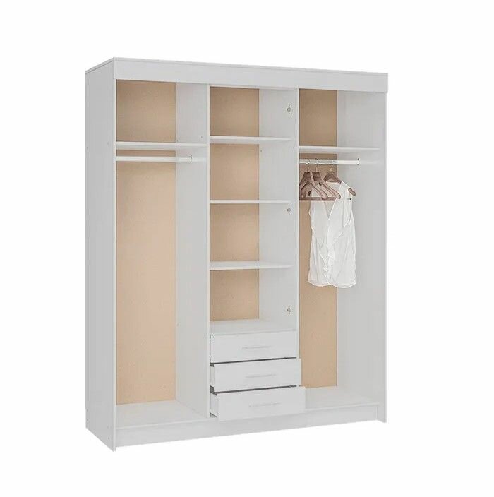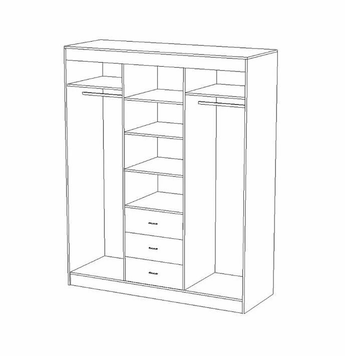 | Комплектация | Шкаф 1 шт. В центральной части — три вместительных ящика, над ними отделение с распашной дверцей и несколькими полочками. |
