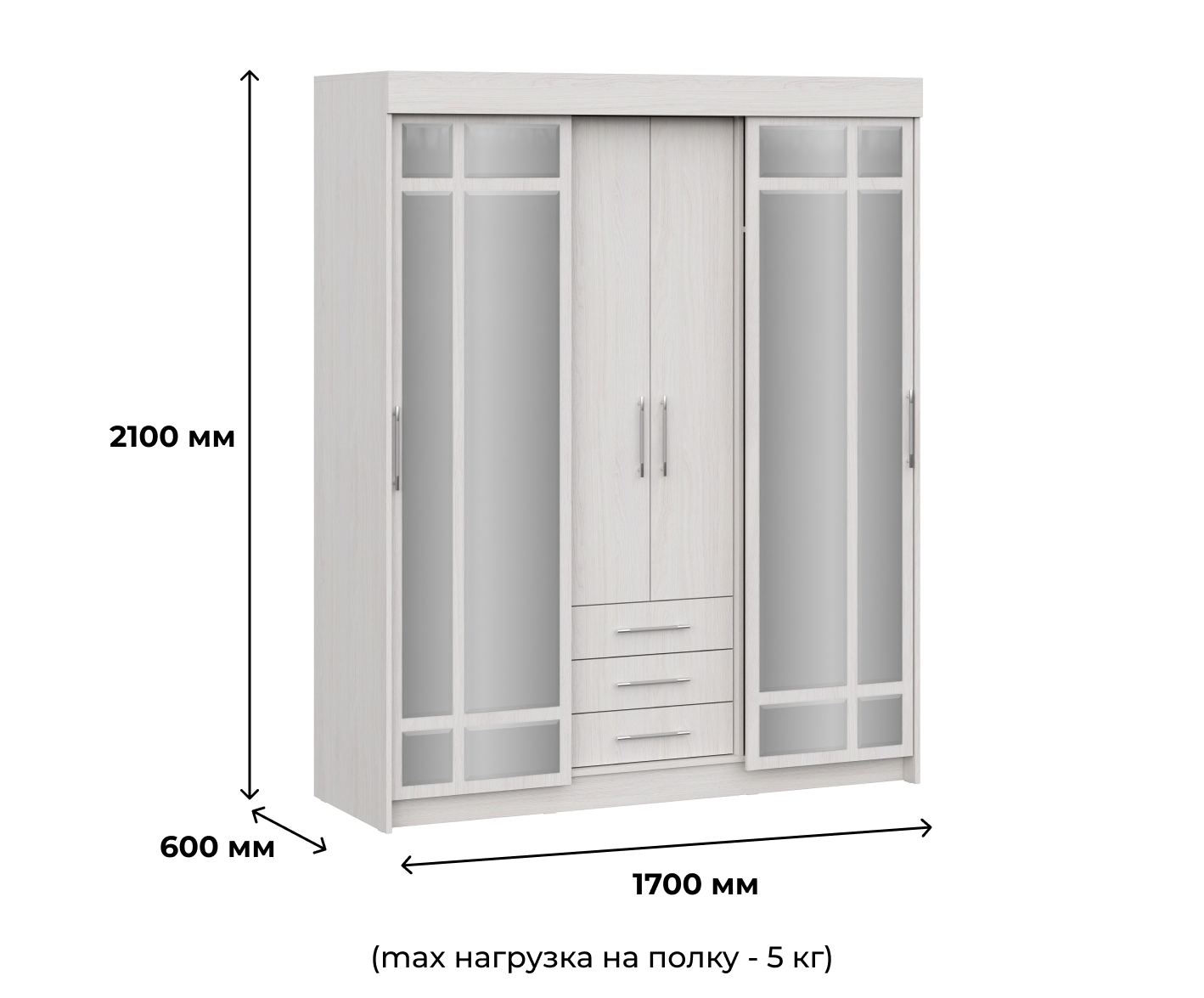 Шкаф-купе Интерьер-Центр Фортуна ясень шимо светлый Четырехдверный 170х60х210 см