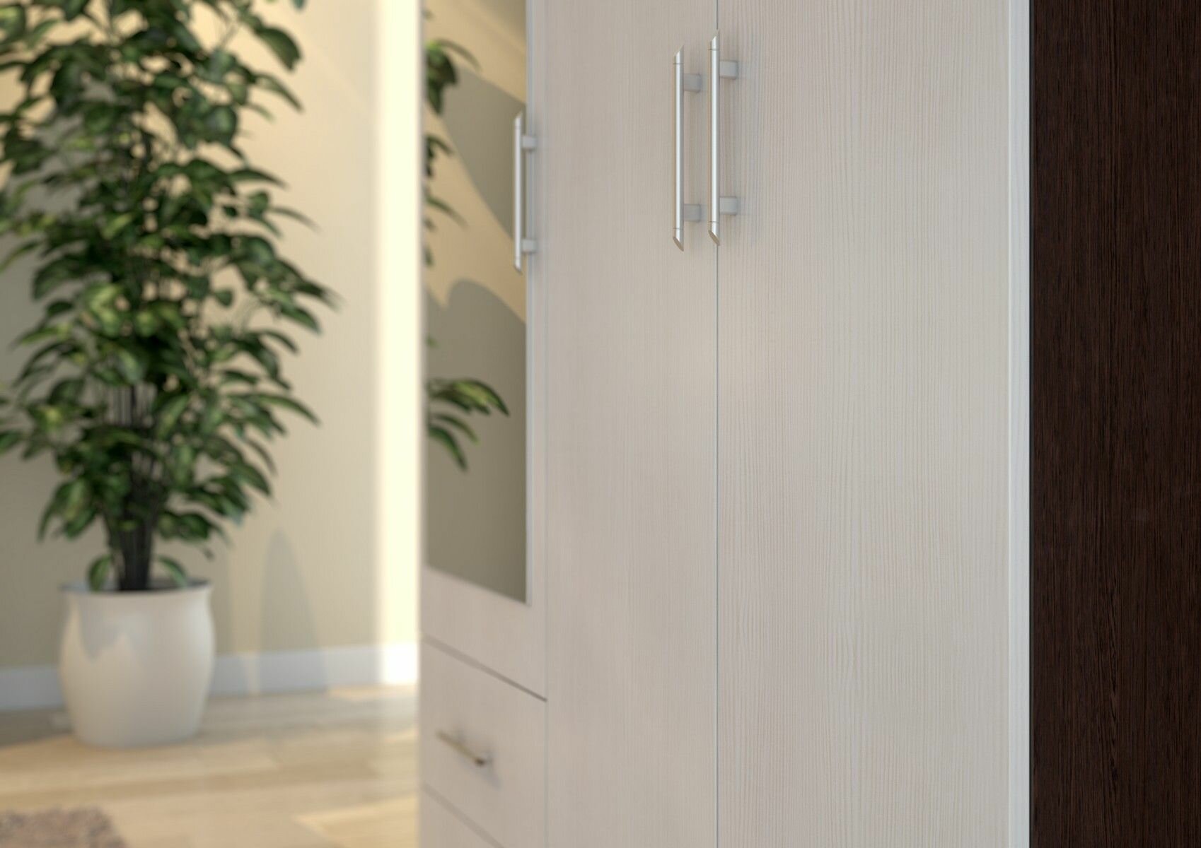 Шкаф раум СВ-476, 3 дверцы, с зеркалом и штангой, универсальный, цвет кремовый вудлайн