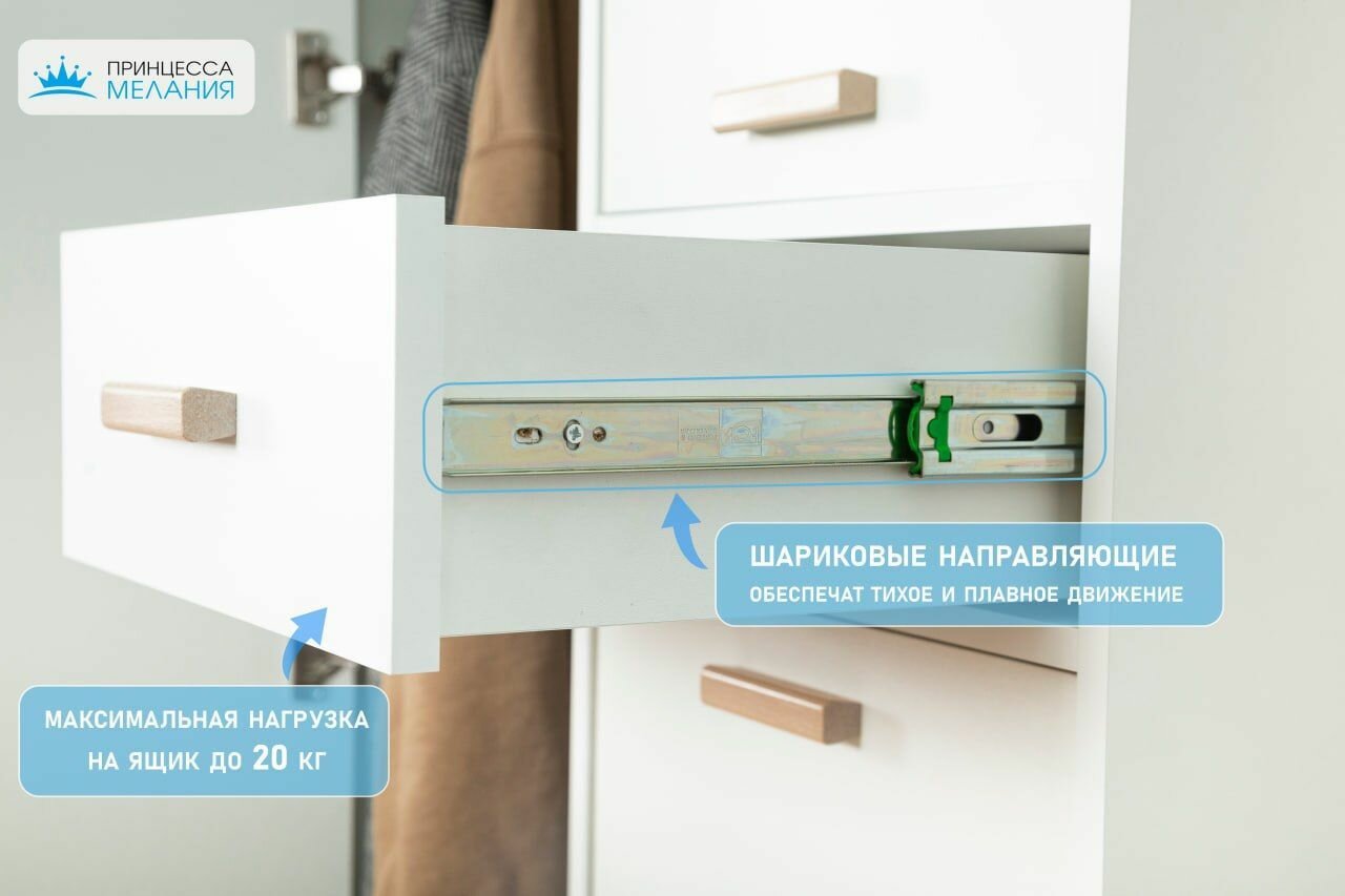 Шкаф для одежды распашной, с ящиком 2126, Принцесса Мелания, Белый, 1850х1190х500 мм интересное: