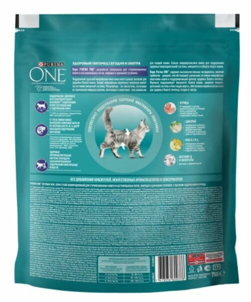 PURINA ONE для взрослых стерилизованных кошек живущих дома с курицей и злаками (1,5 кг)