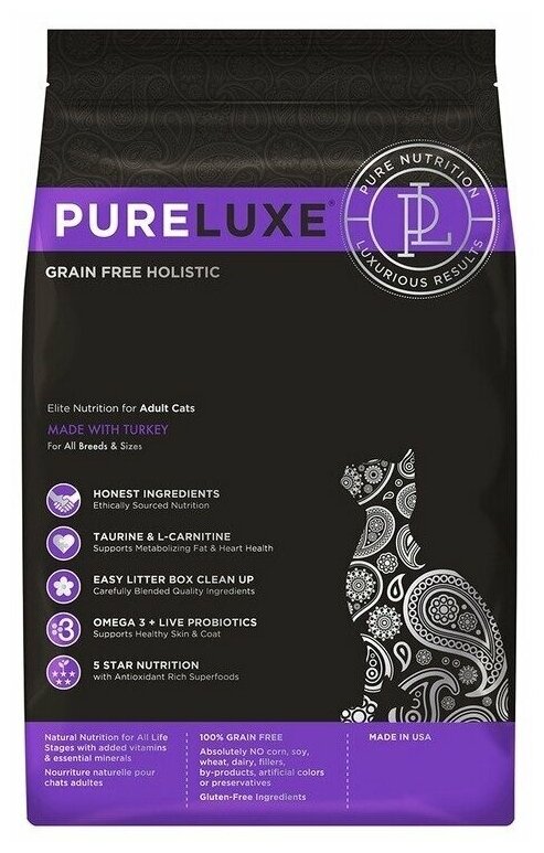 PURELUXE элитное питание беззерновой для взрослых кошек с индейкой (1,5 кг)