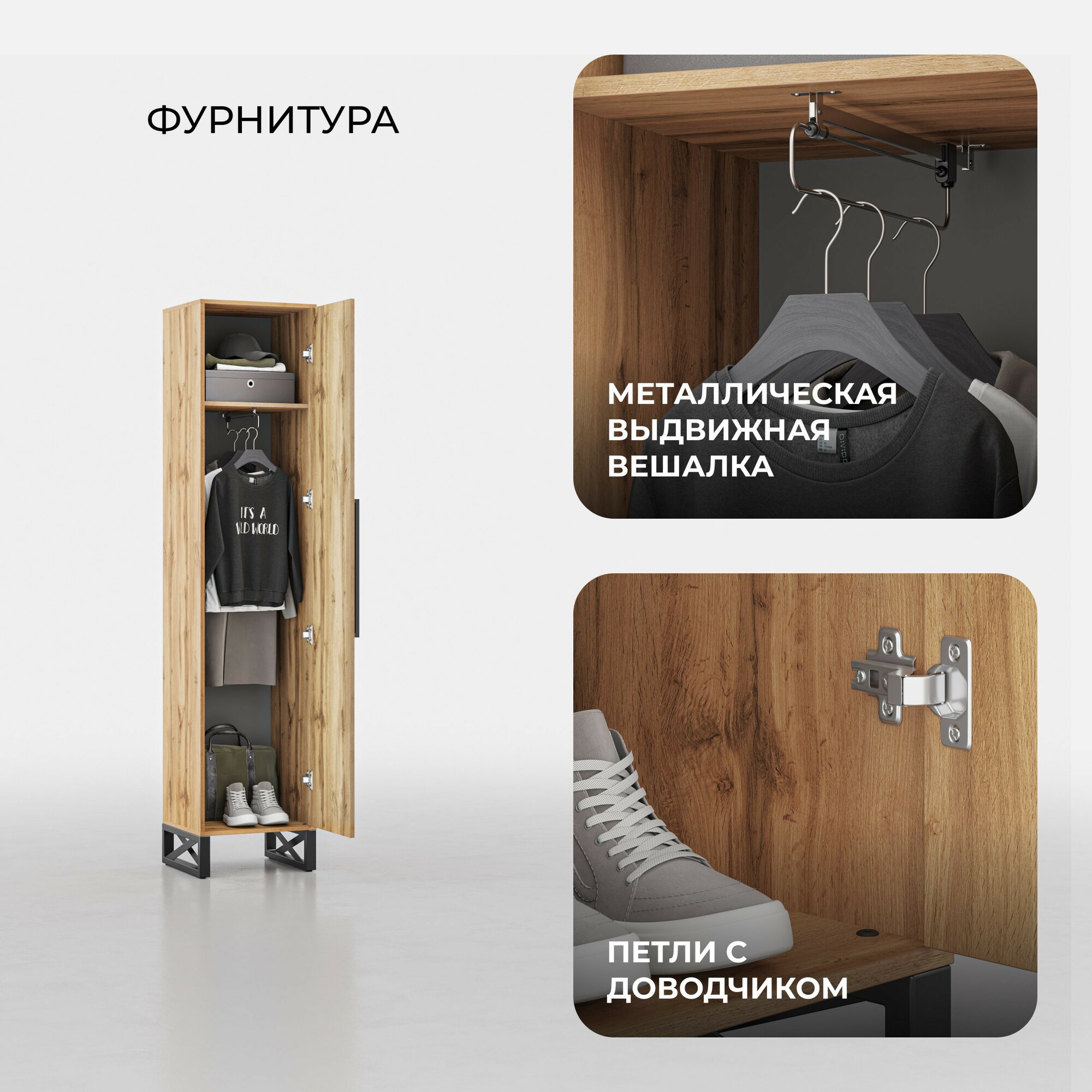 Шкаф лофт Волстрит пенал для одежды 210х45х45 TOPLOFT интересное: