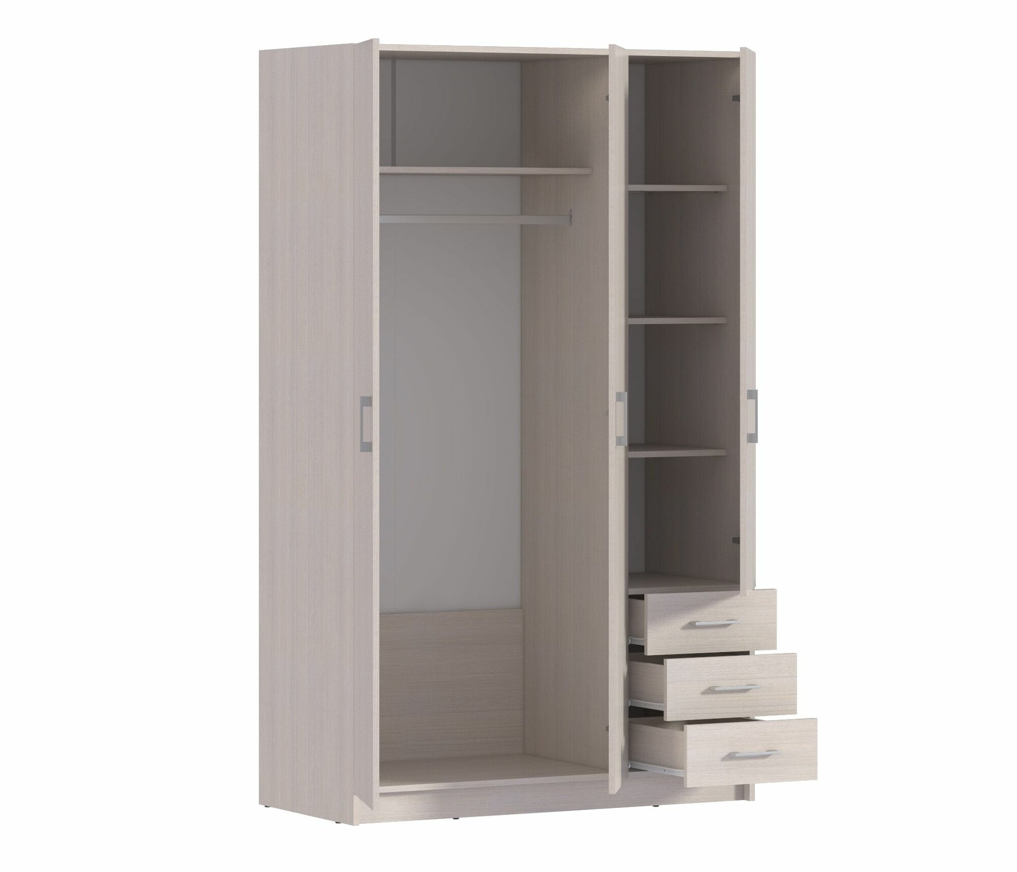 Трехдверный шкаф столплит Терра СБ-2797 с 5 полками, с 3 выдвижными ящиками, со штангой, ЛДСП, Авиньон, 120х200х57 см интересное: