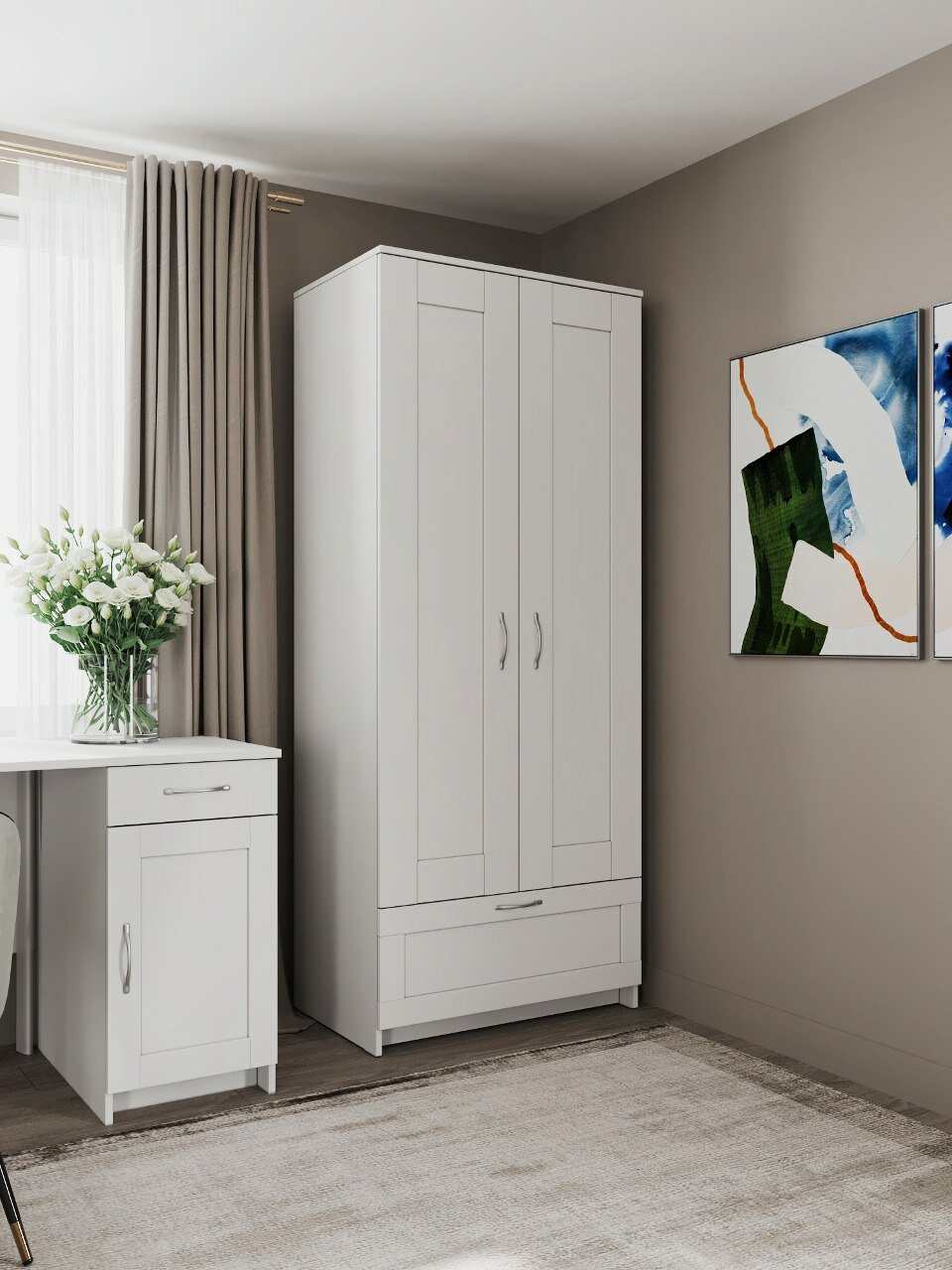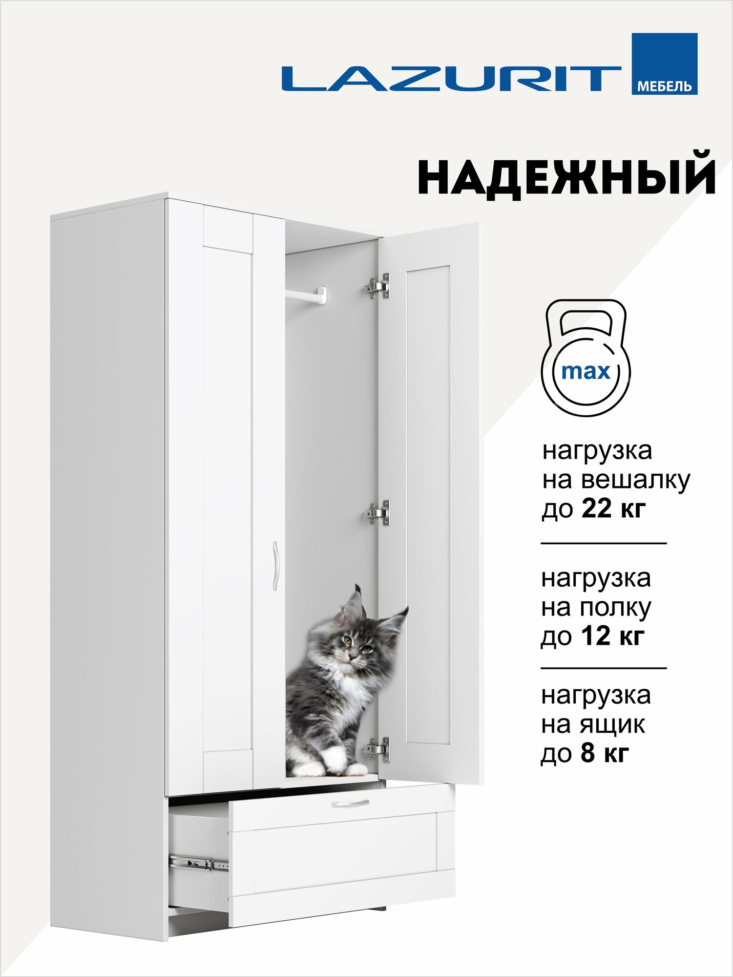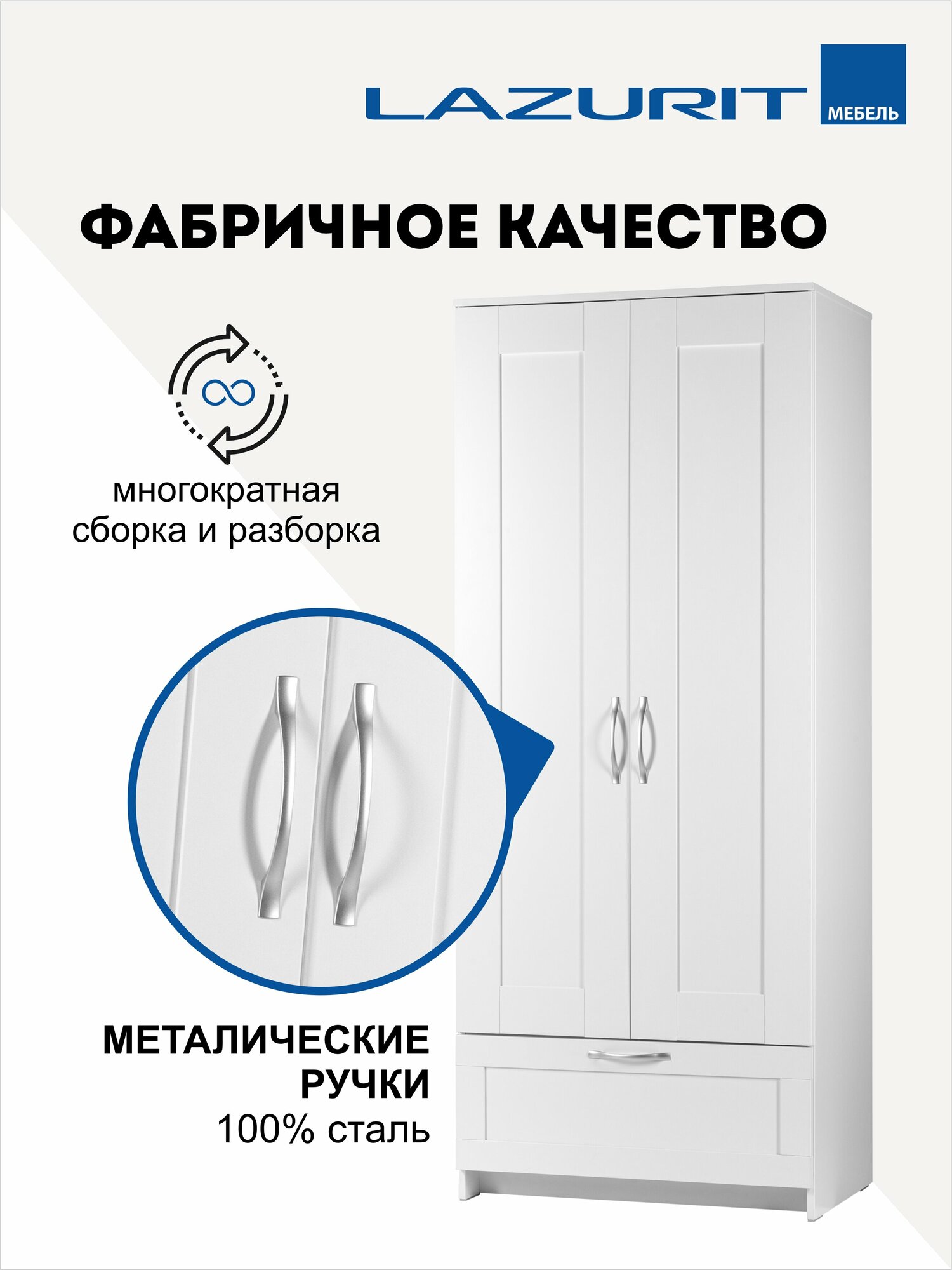 Шкаф для одежды белый Lazurit Classica распашной в прихожую 2 двери и 1 ящик штанга 79х51х190 интересное: