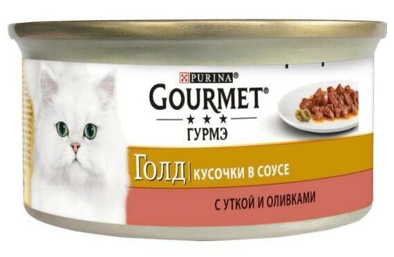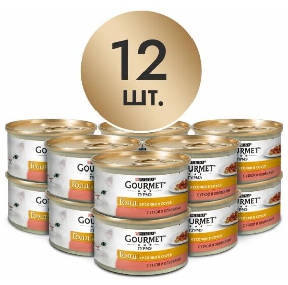 Влажный корм для кошек Gourmet Голд, с уткой, с оливками 12 шт. х 85 г (кусочки в соусе) интересное: