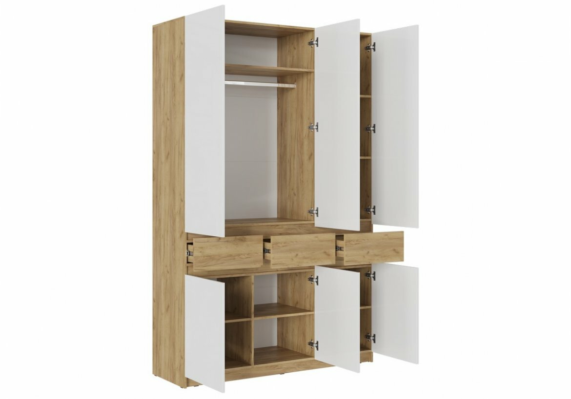Шкаф для одежды распашной Нонтон Луас, 120 см, 7 полок и штанга, белый глянец