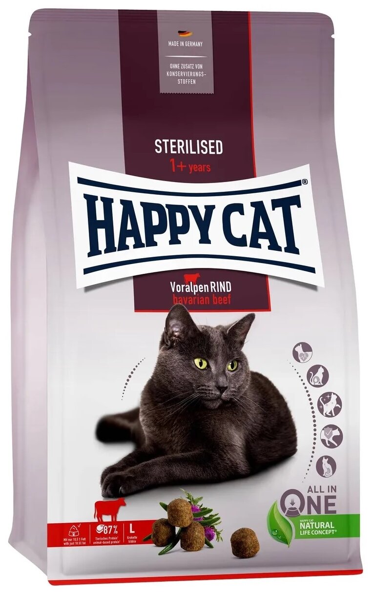 Сухой корм для кошек Happy Cat Supreme Sterilised Voralpen-Rind Альпийская говядина