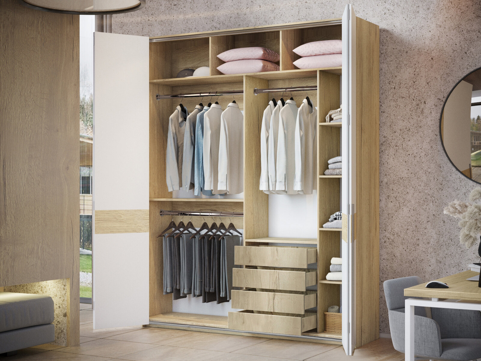 Распашные шкафы фабрики Стиль Эйч Даблфолд, Дуб галифакс натуральный H1180 ST37 интересное: