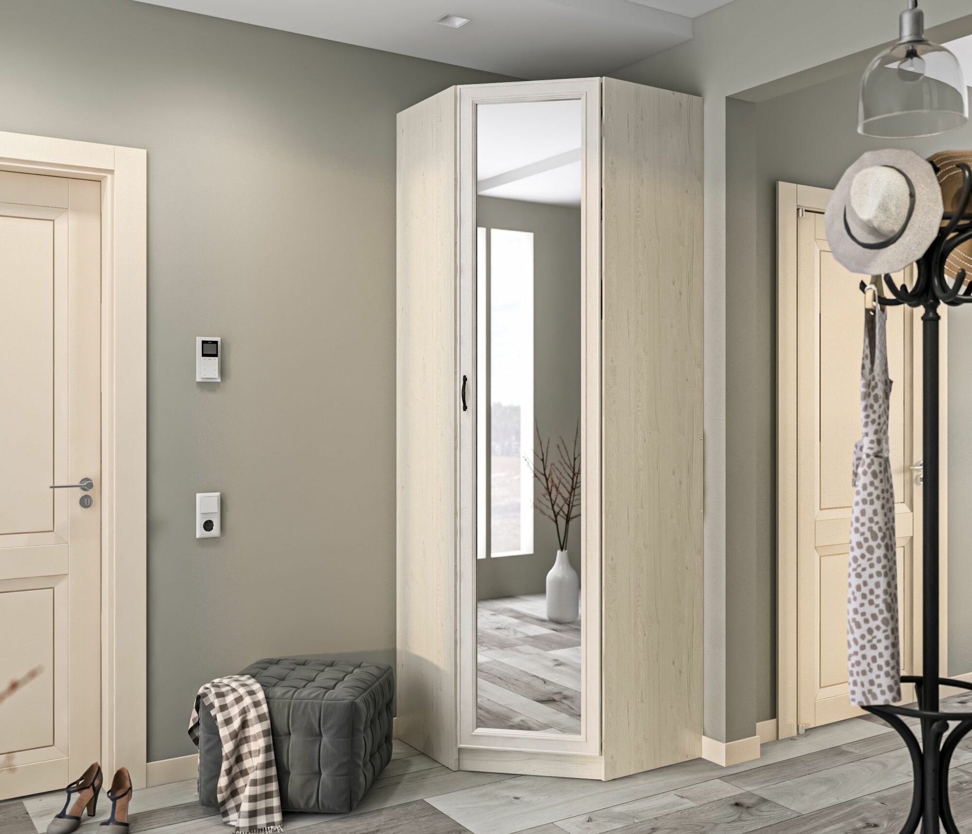 Шкаф столплит Гранд СБ-3507 угловой, с полками, с зеркалом, ЛДСП, Дуб Приморский Белый/МДФ Классика Светлый, 81х81х236 см интересное: