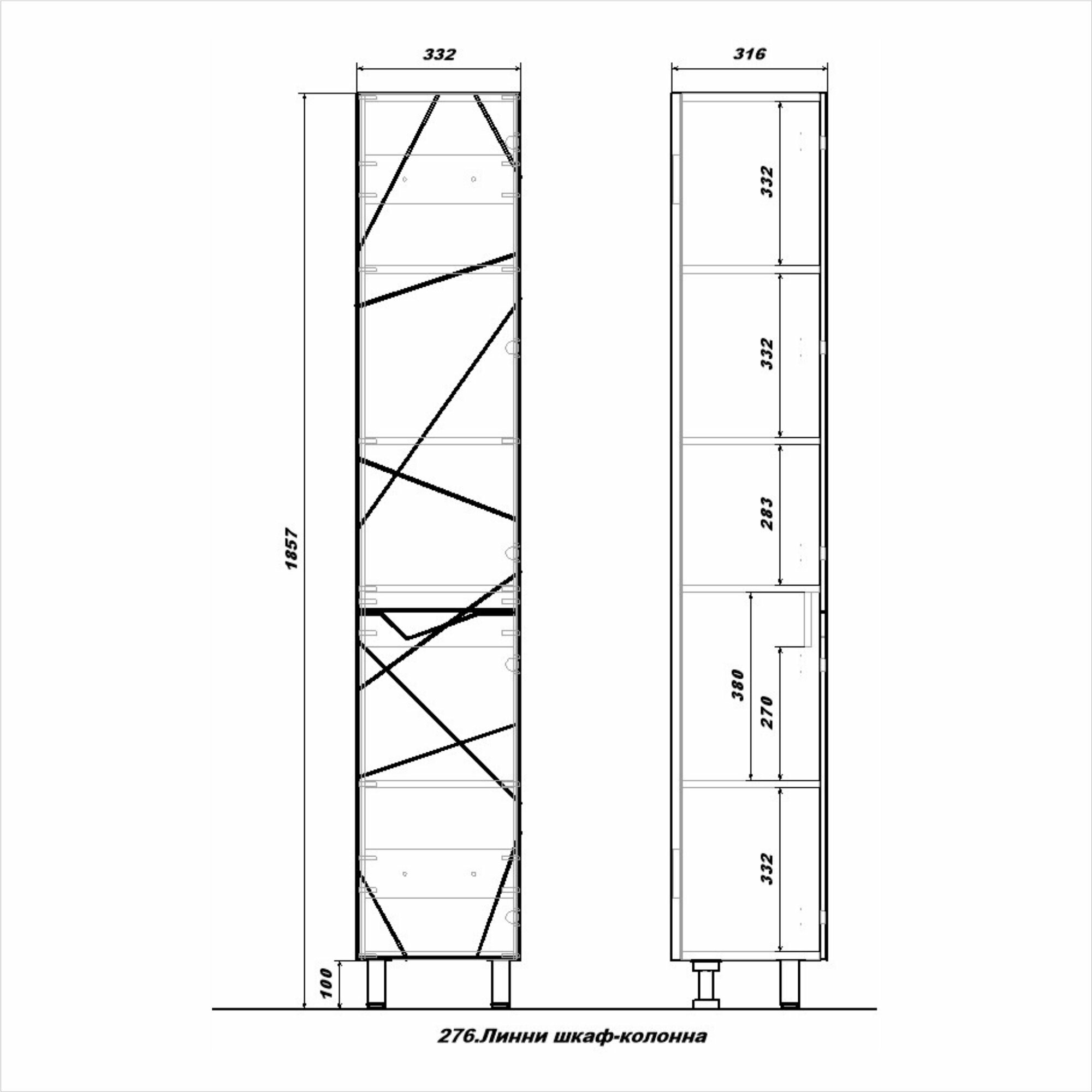 | Комплектация | Шкаф-пенал, 3 ножки (2 передние хром, 1 задняя пластик), крепления к стене, фурнитура, паспорт |