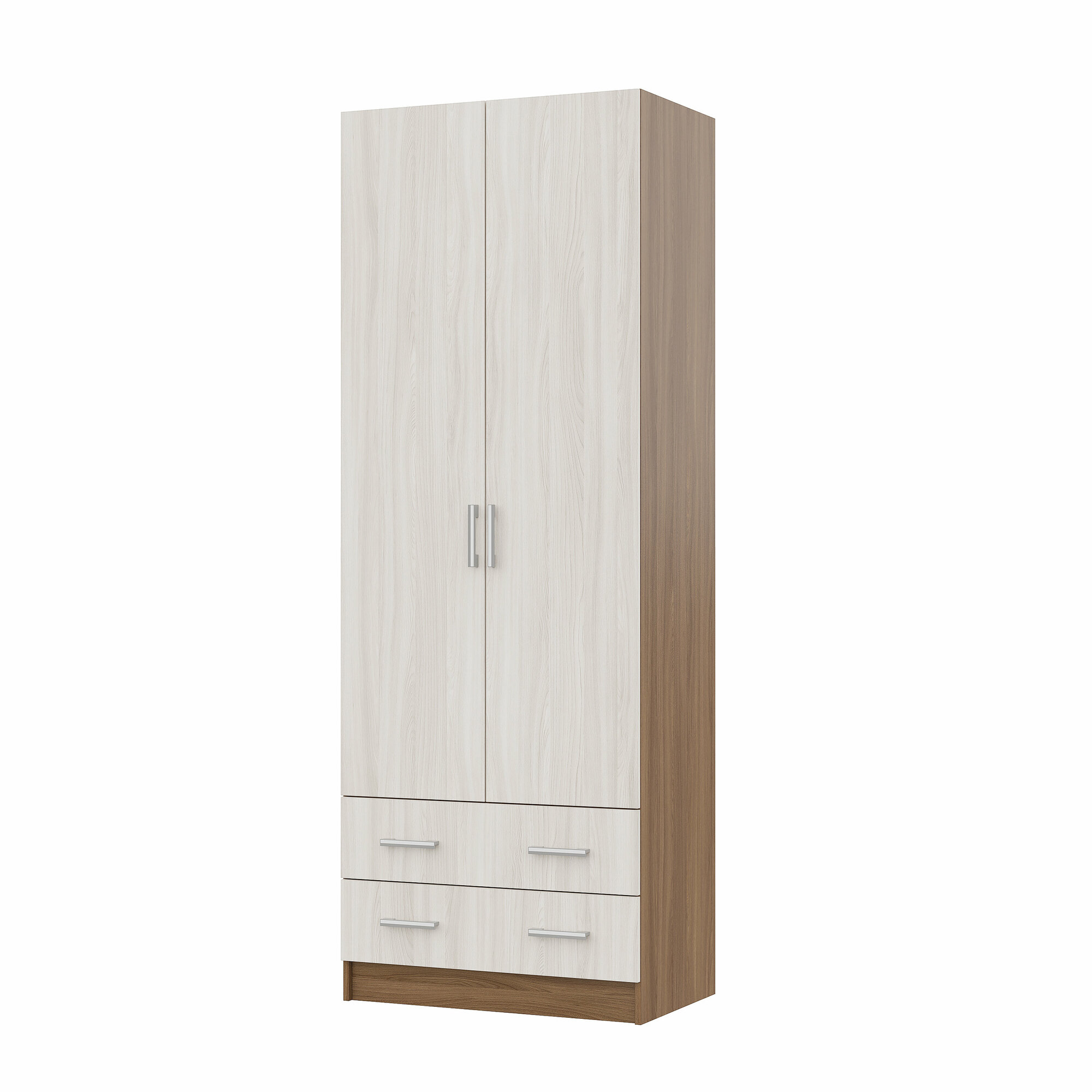 Шкаф распашной двустворчатый ЛДСП, с ящиками, с вешалкой, 80х220х50,5 см дуб крафт серый/дуб крафт белый Гармония ШК 603