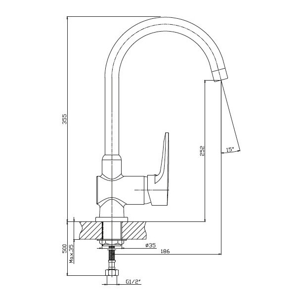 GRANFEST Смеситель для кухни U-обр. D-35мм черный