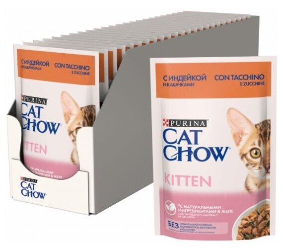 Купить корм для котят CAT CHOW с индейкой и кабачками 26 шт. х 85 г (кусочки в желе)