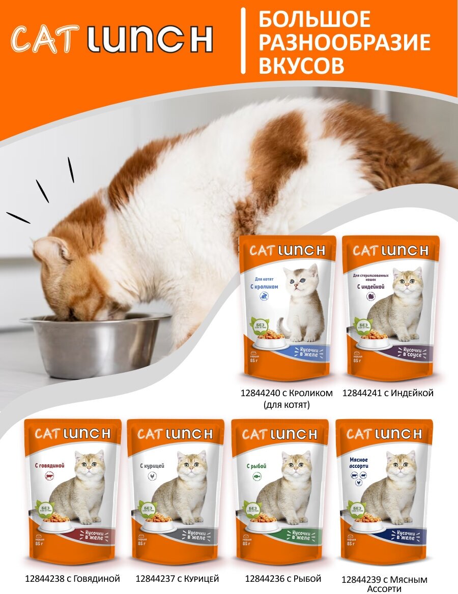КЭТ ланч Консервированный корм д/стерил. кошек и кастр. котов кусочки в соусе с Индейкой 85г (24шт) интересное: