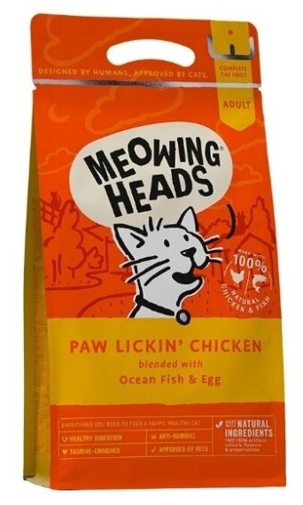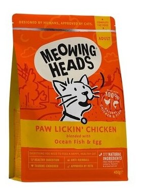 Meowing Heads Для Взрослых кошек с Курицей и рисом Куриное наслаждение (Paw Lickin’ Chicken 450g) MCK450 | Paw Lickin’ Chicken 450g, 0,45 кг