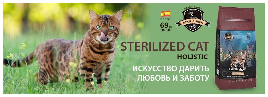 Купить Сухой корм LANDOR для кошек с избыточным весом и стерилизованных с уткой и рисом 10кг