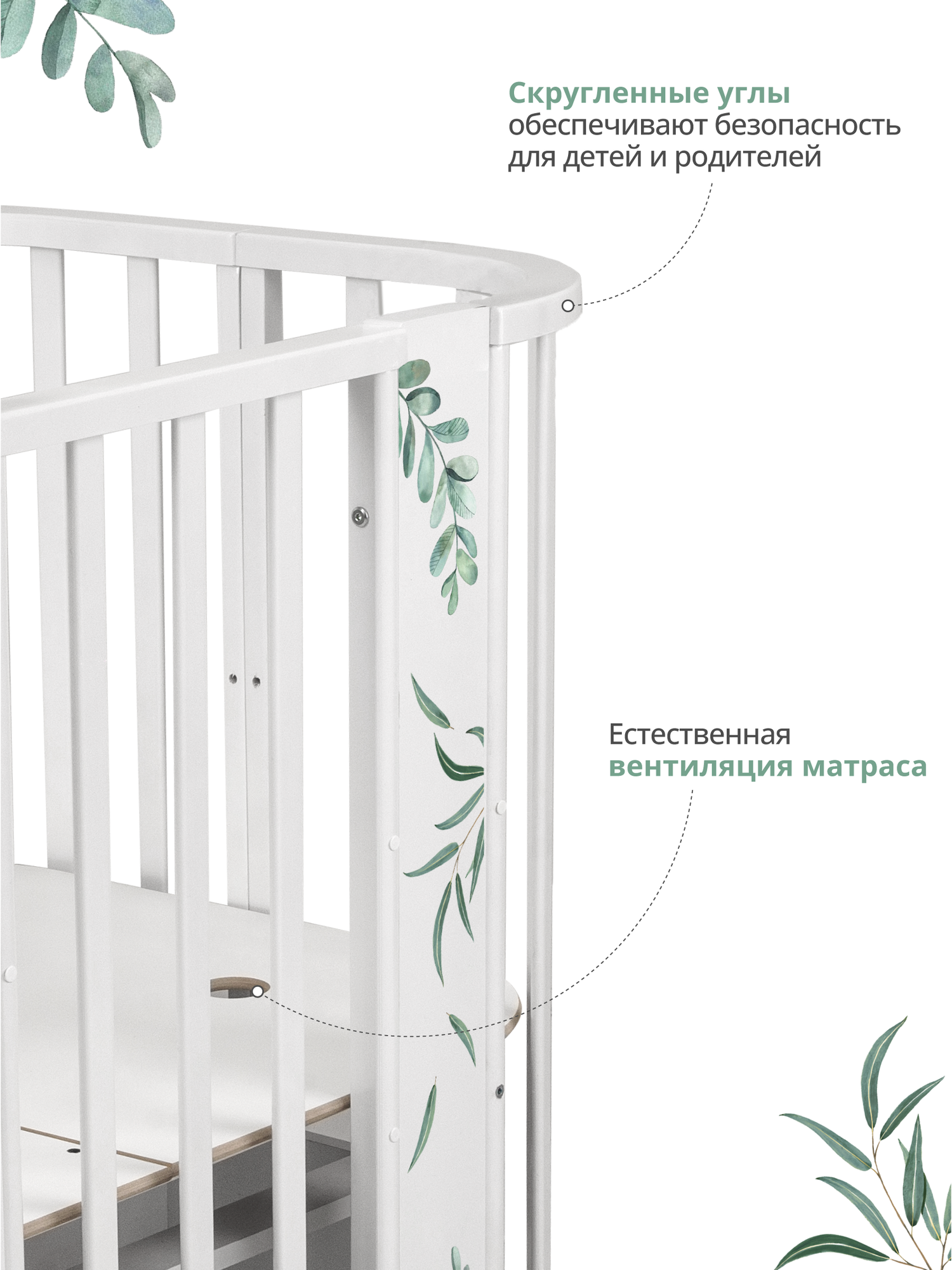 Детская кроватка трансформер Indigo Green Line 5в1 с маятником, листочки
