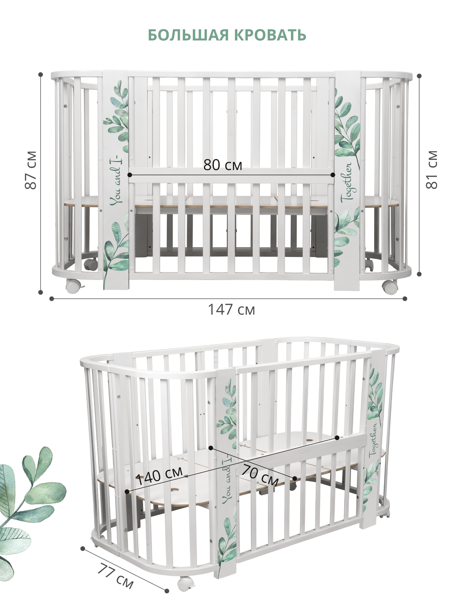Детская кроватка трансформер Indigo Green Line 5в1 с маятником, листочки интересное: